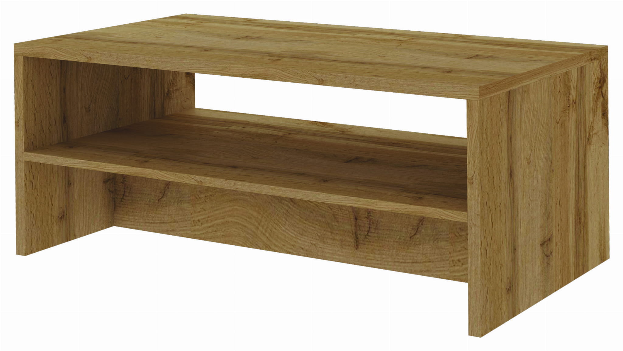 Ława Tahoe TA20 wykonana została w naturalnej kolorystyce, co powoduje, że pomieszczenia dzięki niej stają się ciepłe i przytulne. Korpusy są zrobione z wysokiej jakości płyty wiórowej laminowanej, natomiast fronty z płyty MDF oklejonej folią PCV. Wszystko to jest w pięknym kolorze dąb wotan. Kupując meble z kolekcji Tahoe mamy możliwość dokupienia oświetlenia LED półek witryn oraz dodatkowych listew z oświetleniem do szafy, co nada jeszcze większego uroku meblom. Znajdziemy tu wysokiej jakości system bezdotykowego otwierania frontów oraz szuflad.