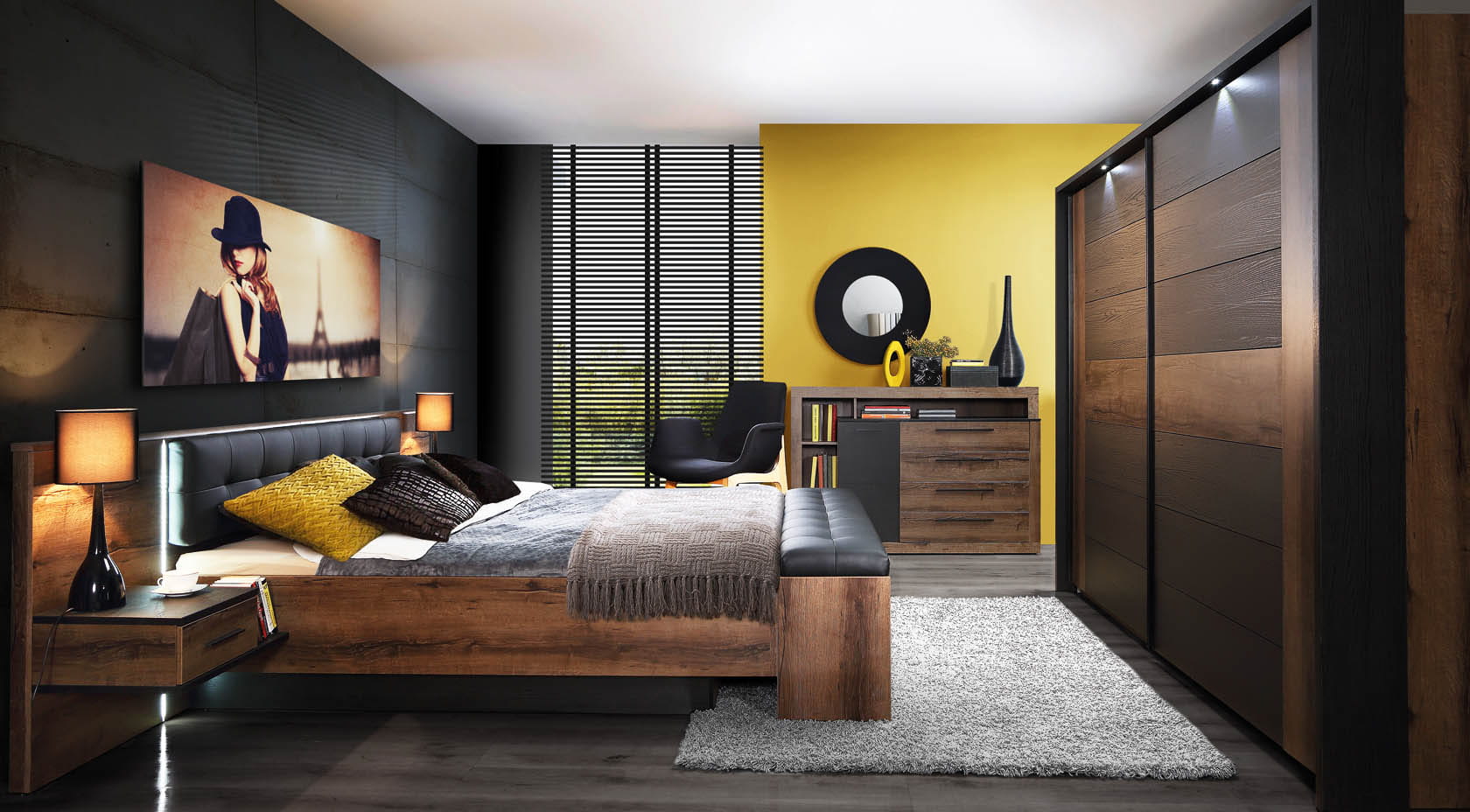 Meble z kolekcji BELLEVUE nadają wnętrzu elegancji i wprowadzają klimat luksusu. Ławka ze schowkiem dopasuje się do aranżacji każdej sypialni. Wykorzystasz ją jako komfortowe siedzisko, wyróżniające się pięknym czarnym pikowaniem. To również dodatkowe miejsce przechowywania. Siedzisko jest wyposażone w podnośnik gazowy, umożliwiający jego sprawne podnoszenie i opuszczanie. Efekt luksusu uzyskano dzięki połączeniu ciemnych dekorów Dąb Szlachetny i Dąb Czarny.