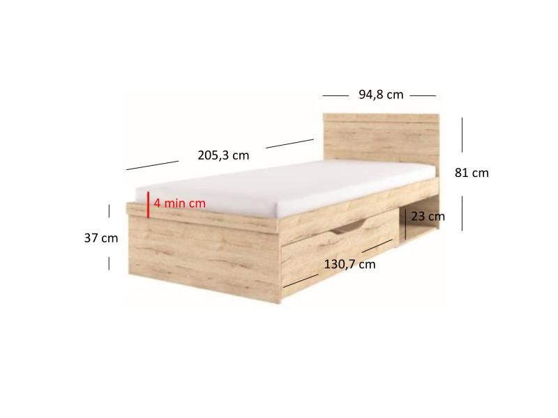 - W cenę łóżka nie jest wliczony materac, wymagany rozmiar materaca 90x200.