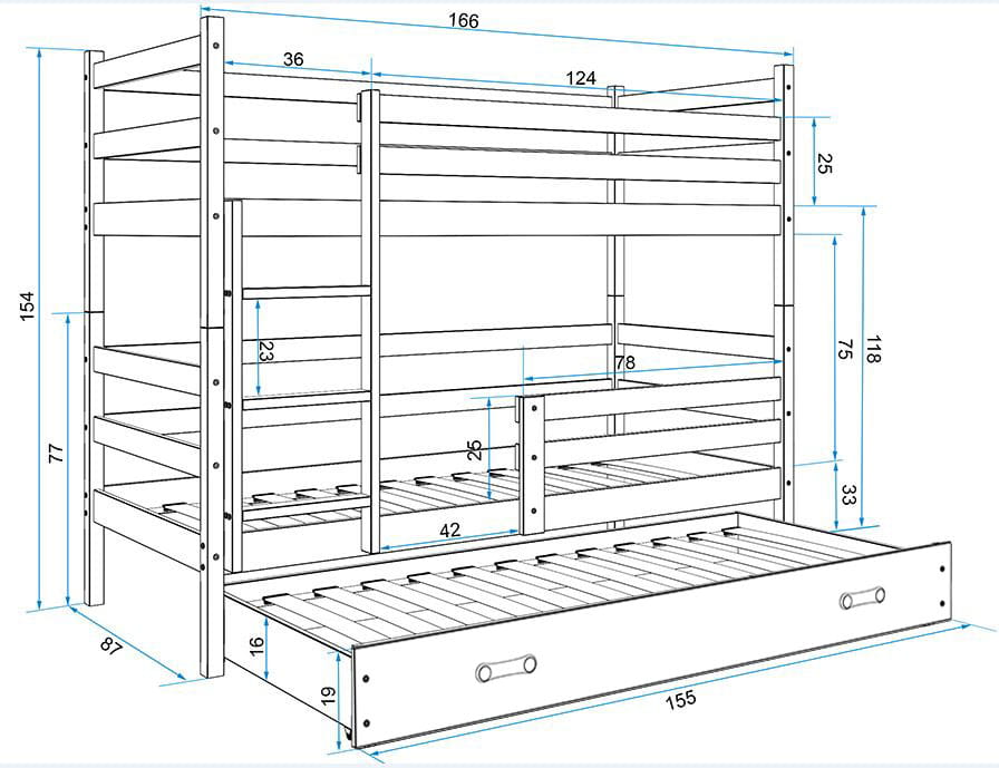 Łóżko piętrowe 3- osobowe ERYK