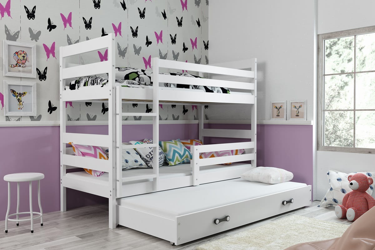 Łóżko piętrowe 3- osobowe ERYK 190/80 białe