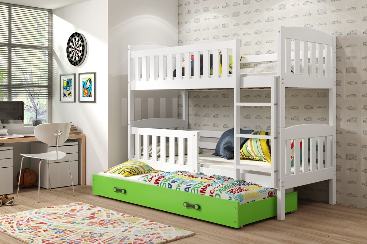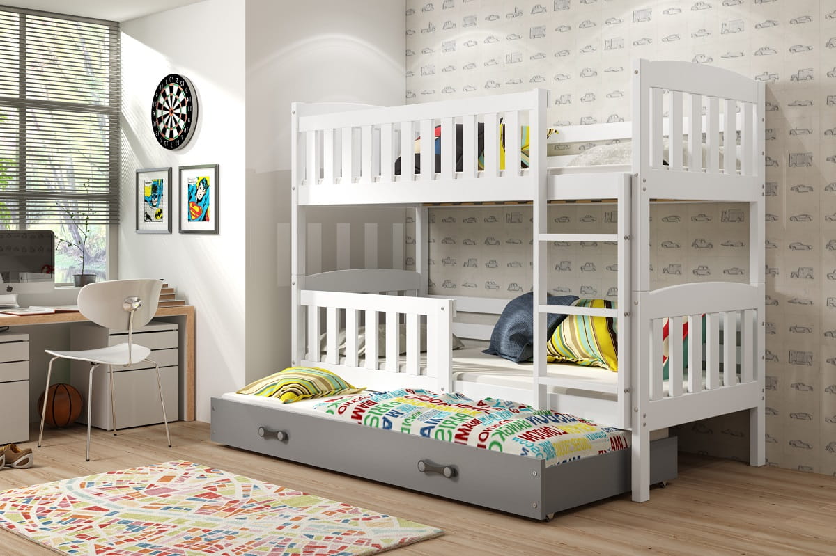 Łóżko piętrowe 3- osobowe KUBUŚ 190/80 białe