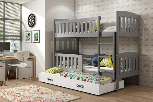 Łóżko piętrowe 3- osobowe KUBUŚ 190/80 grafit