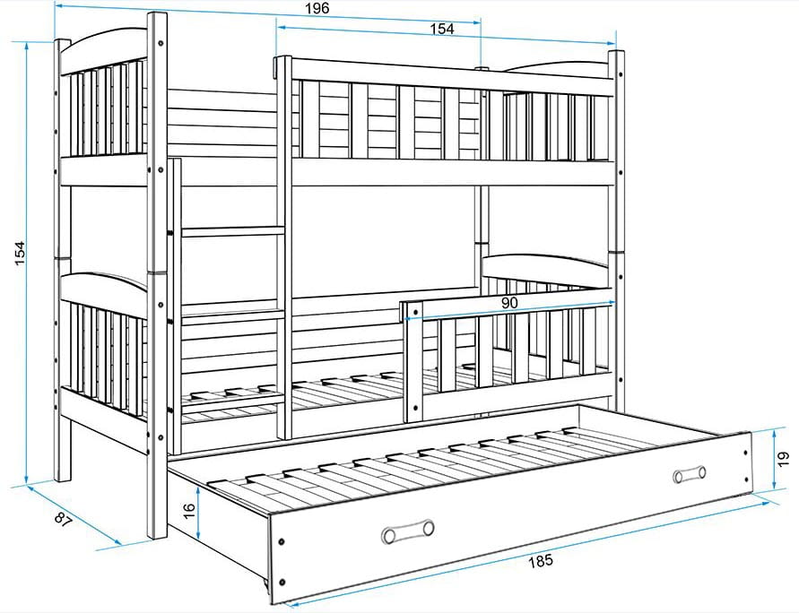 Jakość wykonania łóżka sprawia, że model ten prezentuje się świetnie, a wytrzymała i łatwa w montażu konstrukcja łóżka zapewnia bezpieczeństwo dzieci.