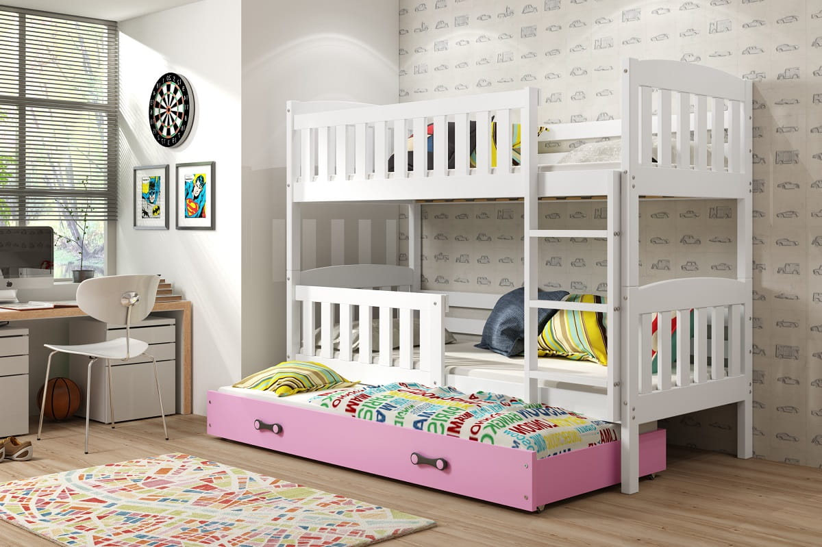 Łóżko piętrowe 3- osobowe KUBUŚ 200/90 biały