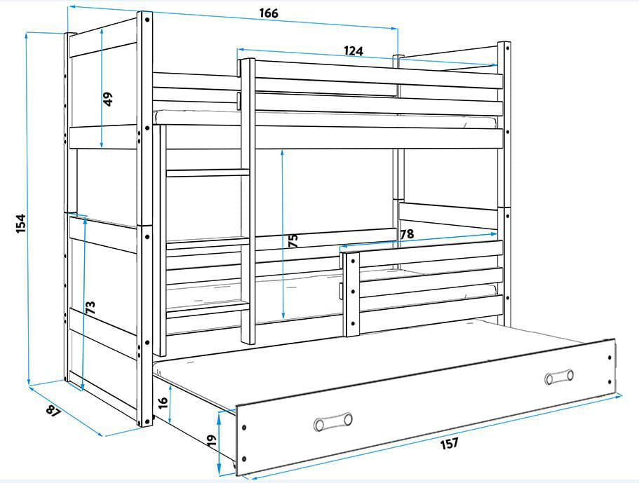 Łóżko piętrowe 3- osobowe RICO 160/80 sosna
