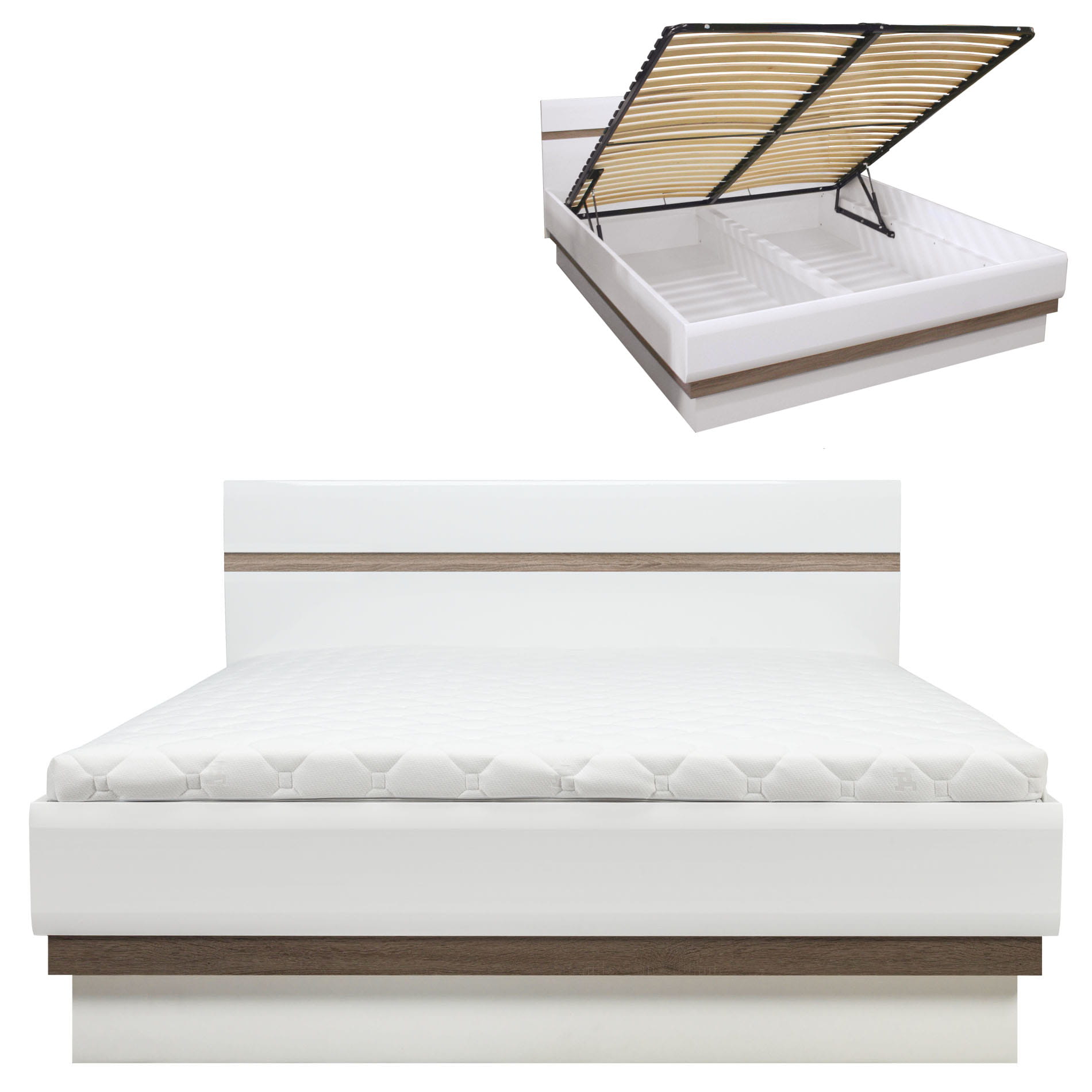 Łóżko z pojemnikiem 180x200 białe dąb LIONEL LI12