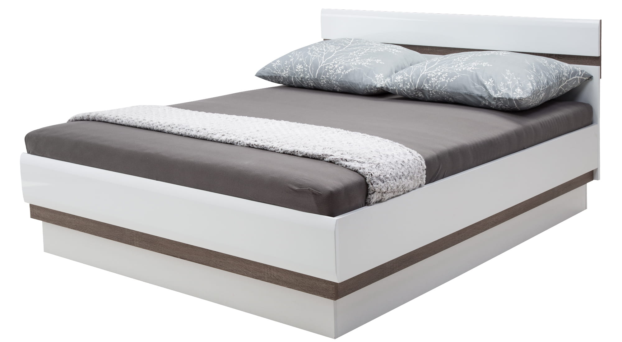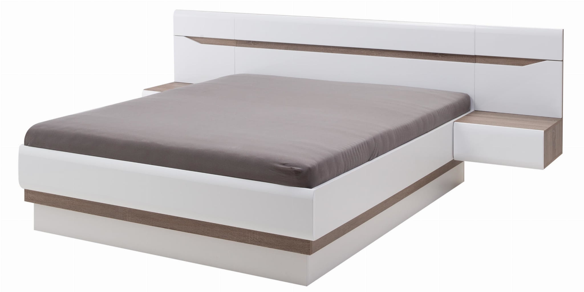 LIONEL LI12 przykuwa uwagę oryginalną formą oraz kontrastowym połączeniem wybarwienia dębu sonoma truflowego z wykończonym na biały połysk wezgłowiem i frontem, które efektownie rozświetlają pomieszczenie.