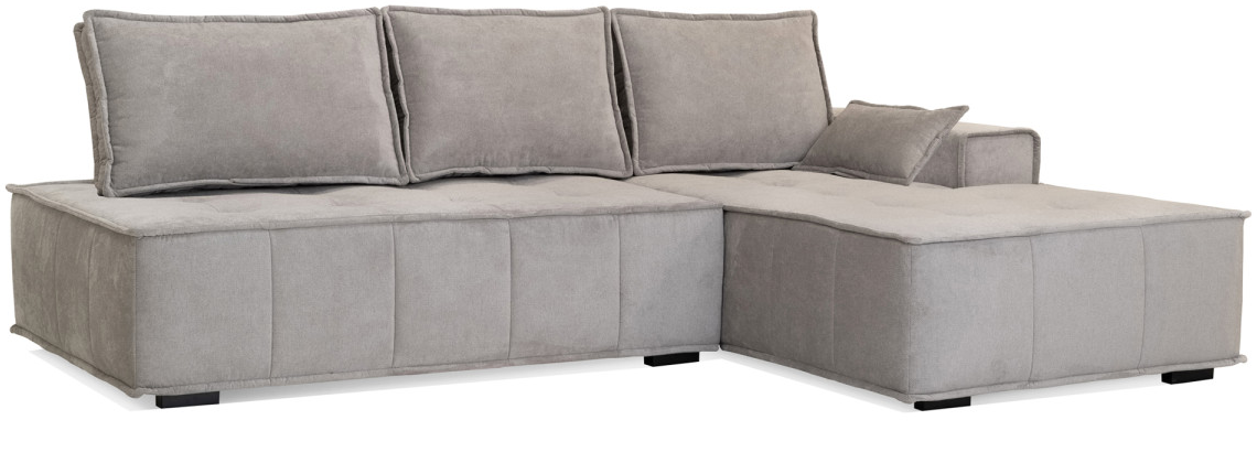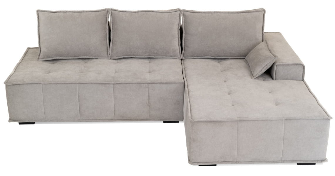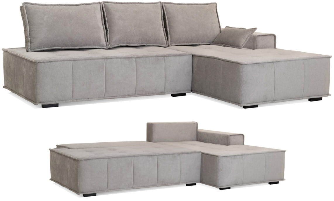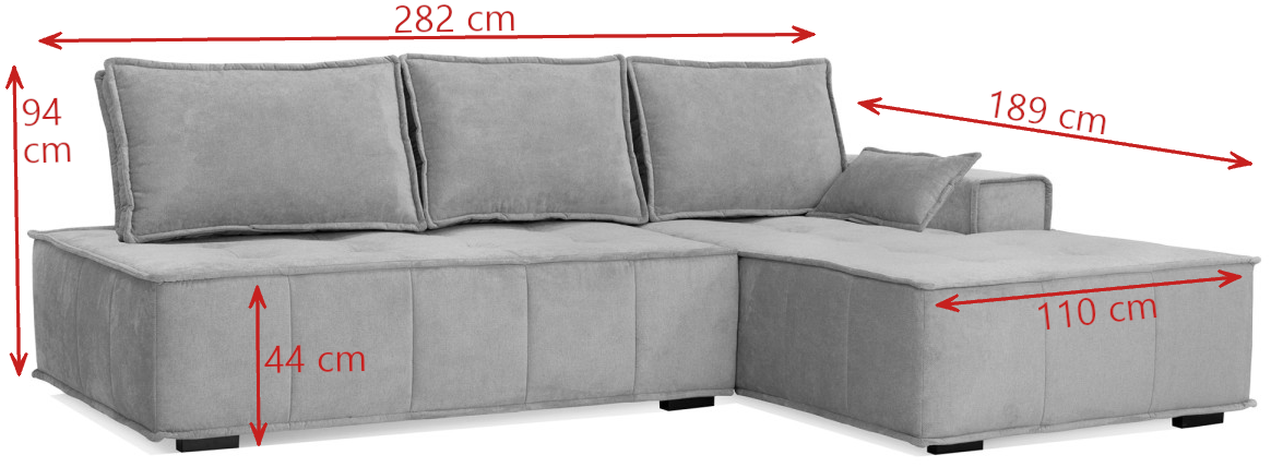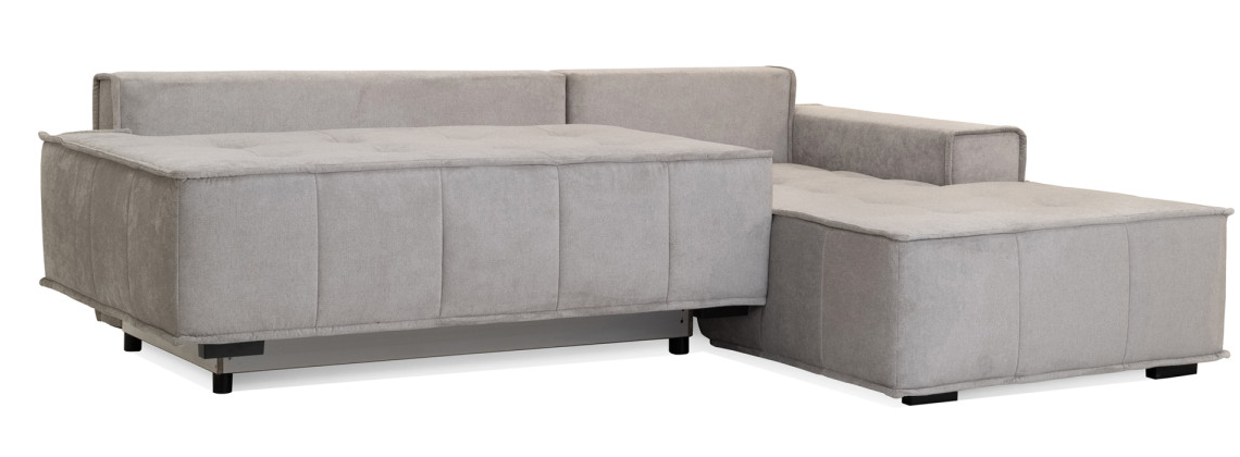 Kiedy odwiedzą Cię goście, możesz rozłożyć narożnik za pomocą automatów sprężynowych ułatwiających szybkie oraz łatwe rozkładanie. Wystarczy wysunąć siedzisko, a w jego miejsce położyć oparcie. Powierzchnia spania o wymiarach 250x130 cm sprawia, że mebel staje się wygodnym łóżkiem do wypoczynku.