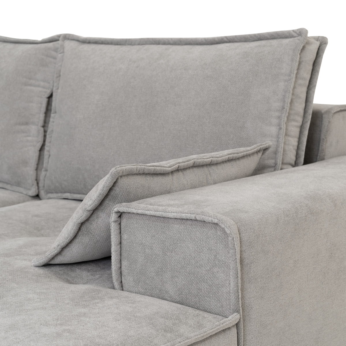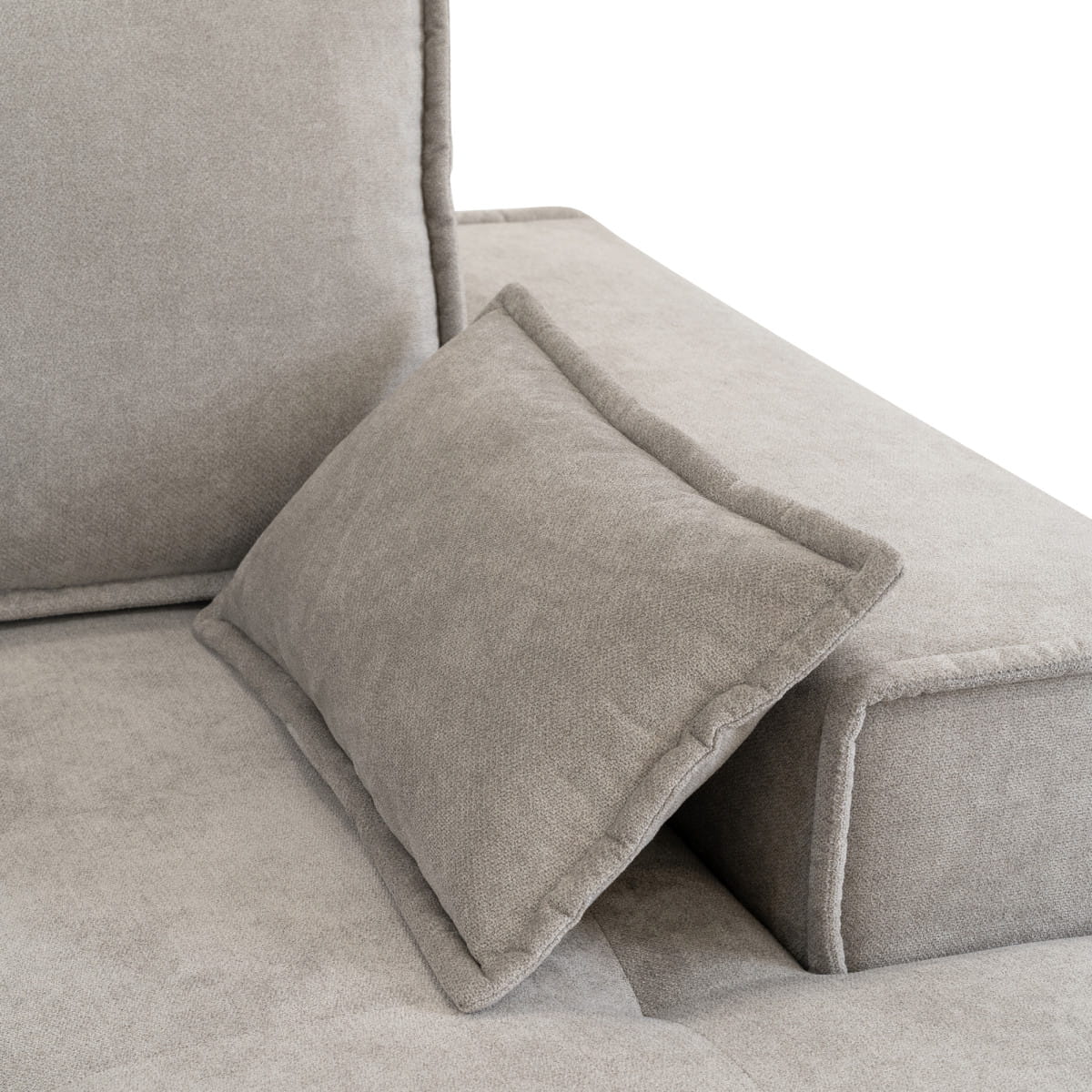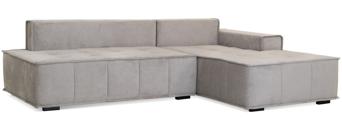 Jego stylowy charakter podkreślony został prostą linią stylistyczną i solidną lamówką na krawędziach, co nadaje mu nowoczesnego wyglądu. Pikowania i pionowe przeszycia dodają narożnikowi szyku oraz przełamują jego jednolitą bryłę.