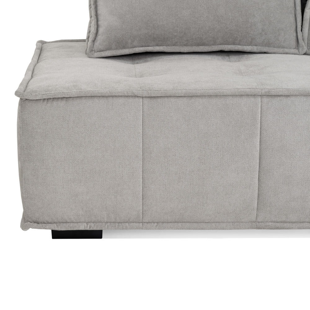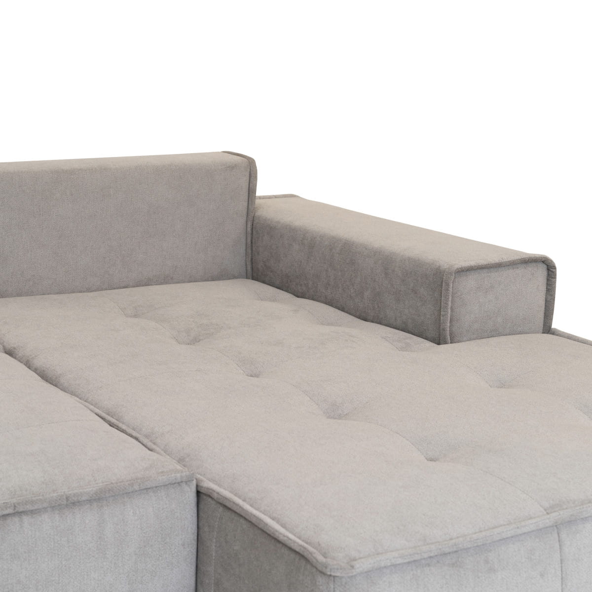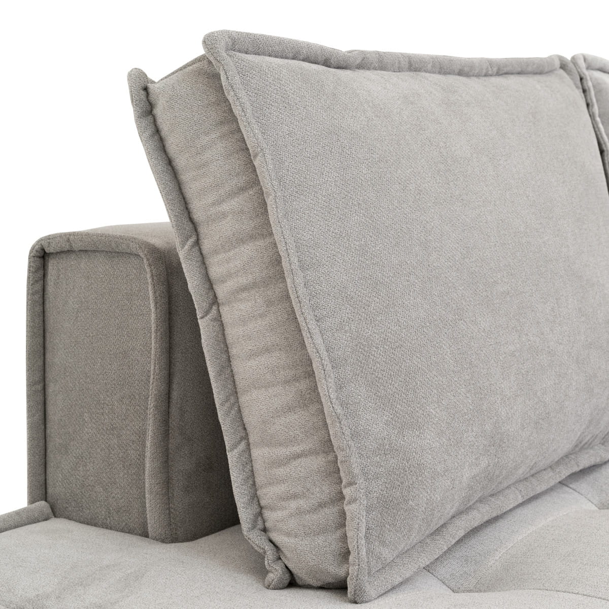 Jego stylowy charakter podkreślony został prostą linią stylistyczną i solidną lamówką na krawędziach, co nadaje mu nowoczesnego wyglądu. Pikowania i pionowe przeszycia dodają narożnikowi szyku oraz przełamują jego jednolitą bryłę.