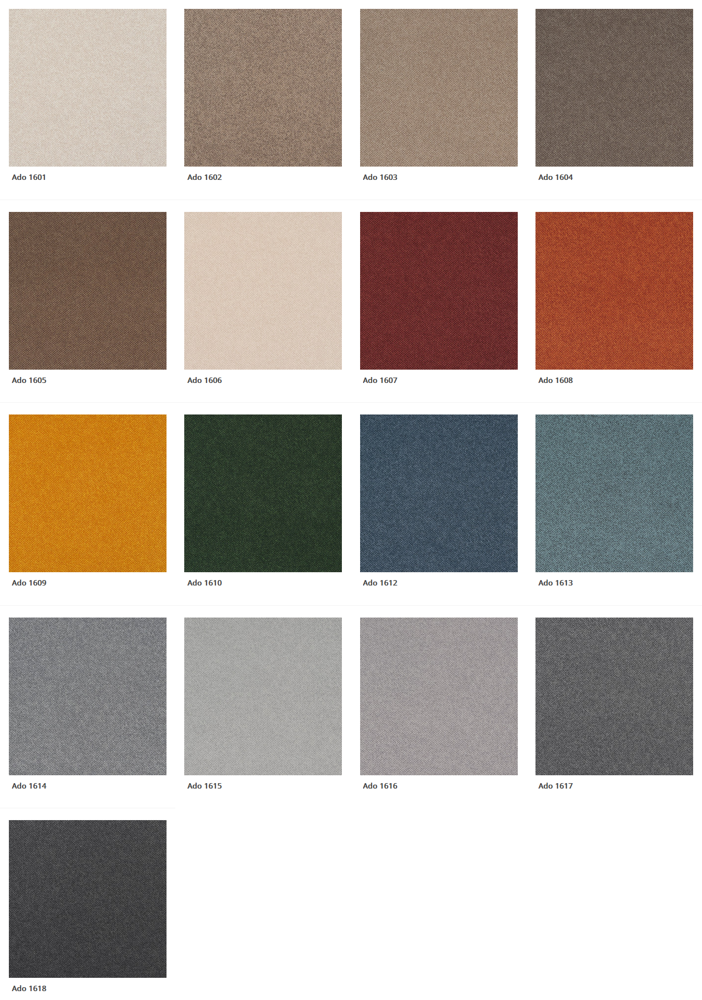 Narożnik możemy wykonać w innym odcieniu tkaniny Ado. Paleta dostępnych kolorów znajduje się poniżej.