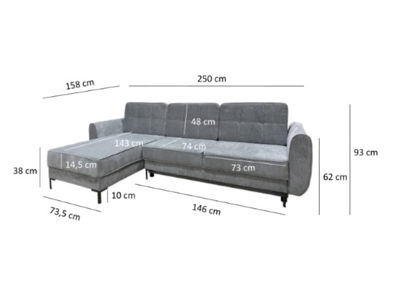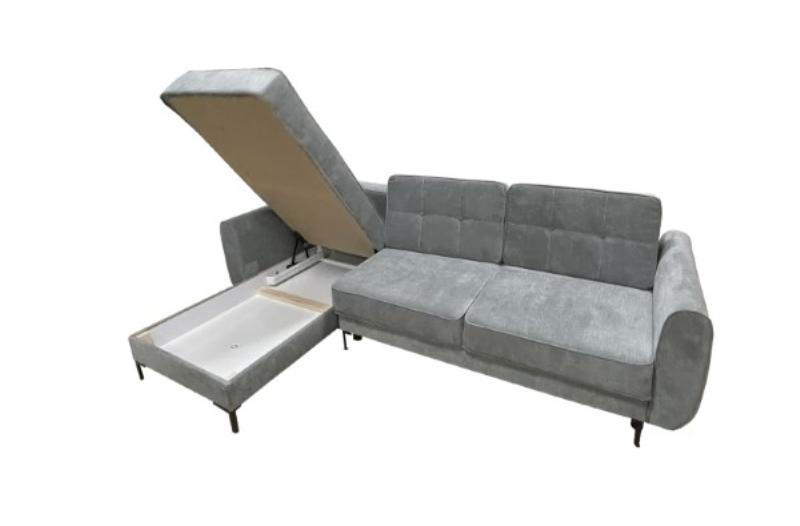 Posiada pojemnik na pościel oraz prosty w obsłudze system rozkładania. Dzięki niewielkim gabarytom zmieści się w każdym domu. Narożnik jest dwufunkcyjny co oznacza, że doskonale sprawdzi się w twoim salonie jako narożnik typu L, a także pełniąc funkcję wygodnego łóżka.