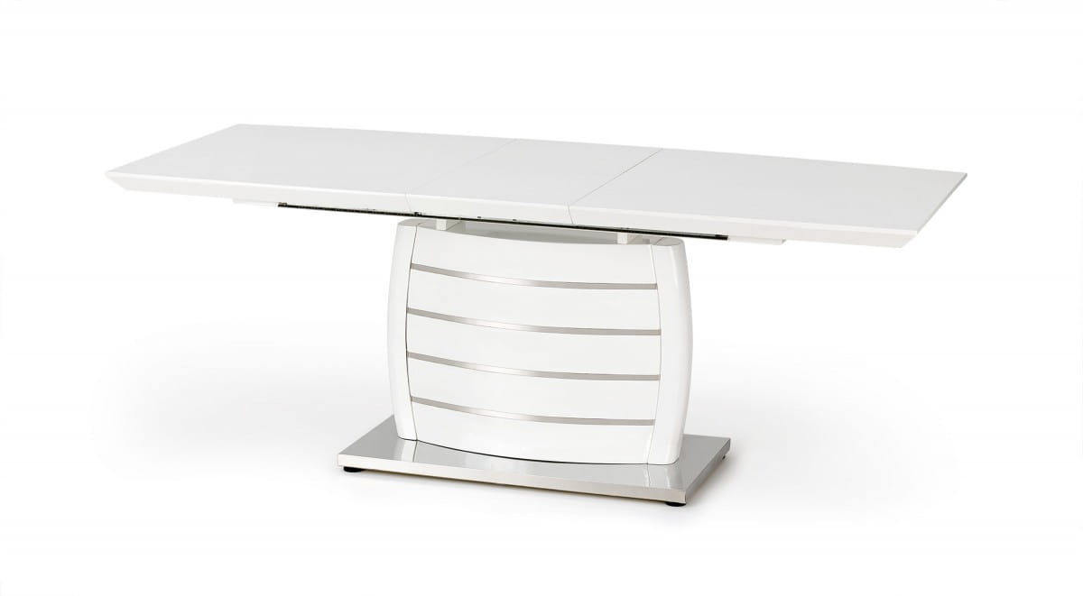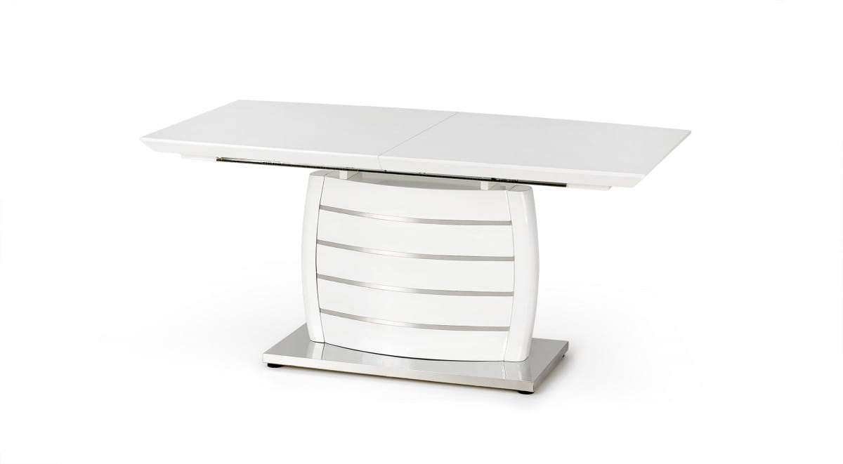 Prezentowany stół jest odpowiedzią dla wszystkich miłośników minimalistycznego wzornictwa, którzy równocześnie poszukują praktycznych rozwiązań dla swojego wnętrza. Oszczędność kształtów i uniwersalna kolorystyka rekompensowane są tutaj wyjątkowym zestawieniem zastosowanych materiałów. Dobra informacja dla fanów mebli o wysokich walorach praktyczno-użytkowych – stół jest rozkładany.