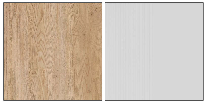 Półka została starannie wykonana z wysokogatunkowej płyty wiórowej pokrytej laminatem w dekorze dąb cremona torro, natomiast panel MDF z dekoracyjnymi ryflowaniami wykończono w matowej bieli. Użyte materiały są solidne i odporne na czynniki zewnętrzne, a także łatwe w utrzymaniu czystości, co gwarantuje bezpieczeństwo podczas codziennego użytkowania mebla i jego trwałość na lata.
