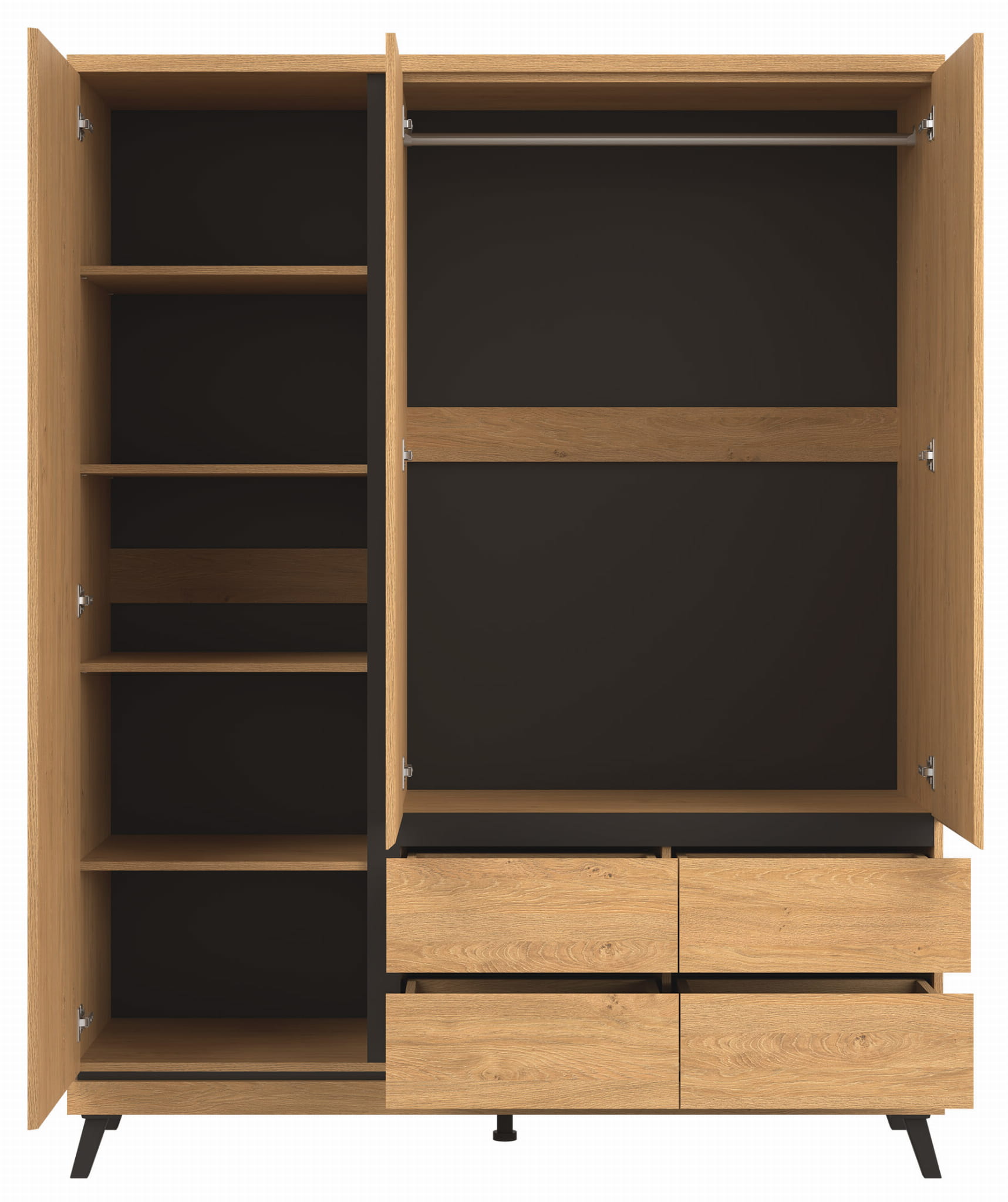 Półki ATE AT14 przeznaczone do szafy ATE AT13 z tej samej kolekcji pozwolą uzyskać dodatkowe miejsce do przechowywania odzieży, obuwia czy innych części garderoby.