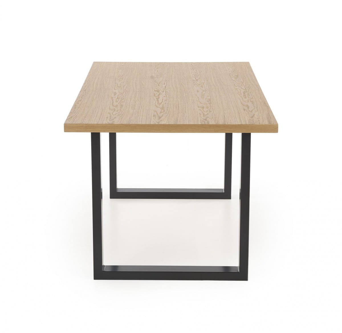 Stół z naszej oferty wprowadzi do jadalni, salonu bądź kuchni wiele ciepła, za sprawą blatu, którego jasne barwy ocieplają wnętrze. Ten loftowy stół do jadalni ma mocne, metalowe nogi w czarnym kolorze pomalowane proszkowo, a wykonany jest z płyty mdf. Taki blat jest gwarancją wysokiej wytrzymałości stołu, która przekłada się na długą jego żywotność.