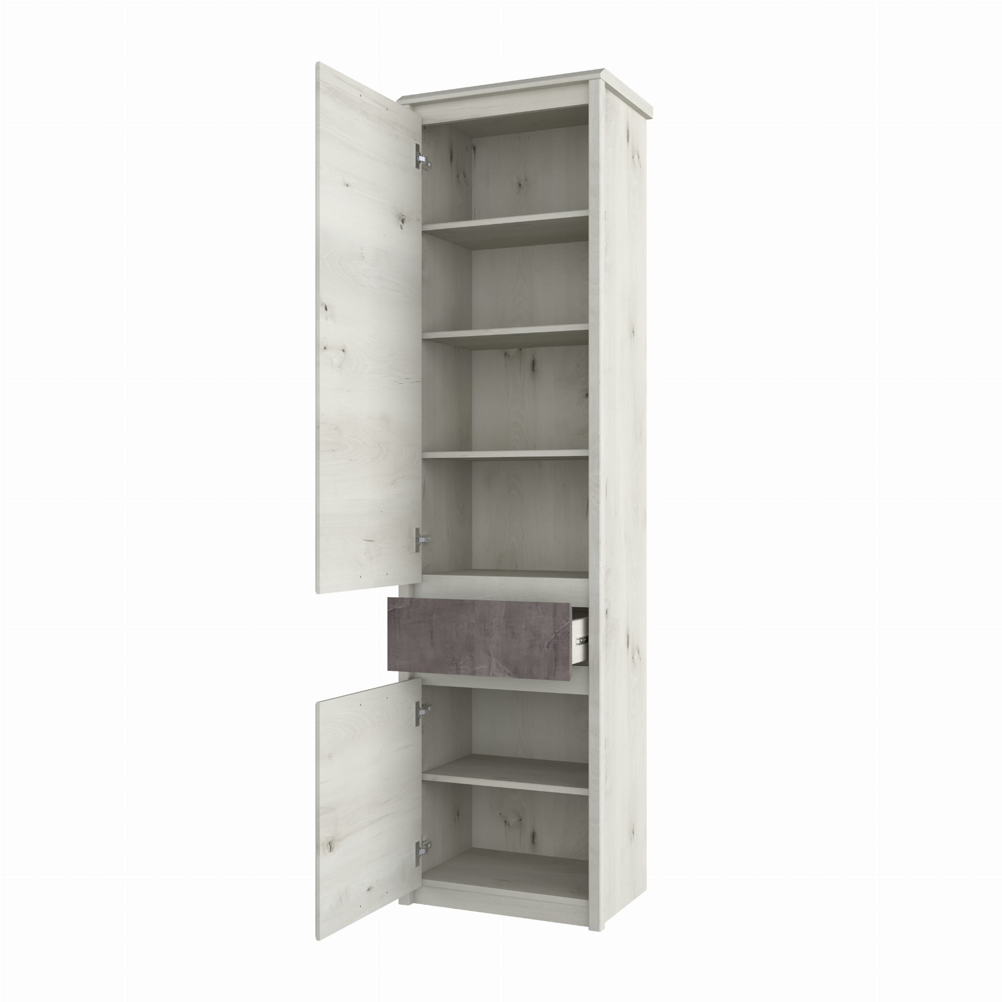 Regał 2d1s to wielofunkcyjny mebel, który może stać się wygodną biblioteczką, miejscem na ciekawe dekoracje lub przestrzenią na dokumenty biurowe. Wysoki regał z zamkniętymi półkami i szufladą idealnie wkomponuje się w aranżację salonu, przedpokoju, pokoju dziennego, pokoju młodzieżowego oraz dziecięcego, a także home office. Regał świetnie sprawdzi się także jako niezależny dodatek do innych kolekcji. Utrzymana w jasnych dekorach kolekcja Nonell jest zaprojektowana tak, aby służyła latami, a przy tym świetnie się prezentowała.