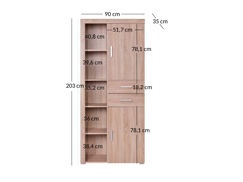Jednym z najczęściej wykorzystywanych mebli podczas urządzania wnętrz jest regał. Kolekcja DAMIS posiada w swojej kolekcji szeroką gamę mebli tego typu, wśród których każdy znajdzie coś co przypadnie mu do gustu. Regał 2d2s zbudowany jest z półek otwartych, które znakomicie wyeksponują wszelkiego typu dodatki i dekoracje, oraz półek zamkniętych tradycyjnymi frontami przeznaczonych do przechowywania. Dodatkowo regał ma szuflady. Mebel ten dedykowany jest do pomieszczeń takich jak salon, pokój dzienny, jadalnia, gabinet lub przedpokój.