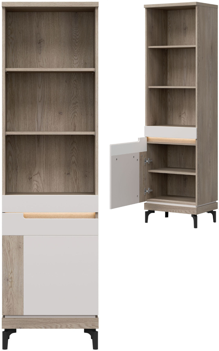 Regał LEWY wysoki Szafka z półkami otwartymi Dąb Cremona ASTON AN07