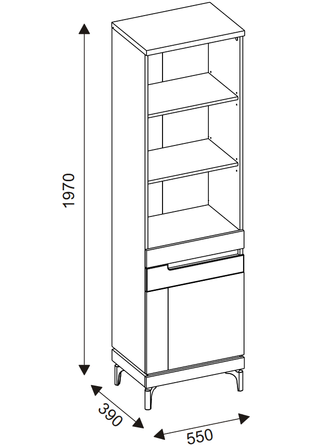Aston AN07 zapewnia dużą ilość praktycznej przestrzeni do przechowywania różnego rodzaju przedmiotów, dzięki czemu można w nim uporządkować książki, dekoracje, czy inne drobiazgi, nadając pomieszczeniu porządek i harmonię. Mebel wyposażony jest w trzy wnęki otwarte oraz dwie wnęki zamknięte drzwiczkami.