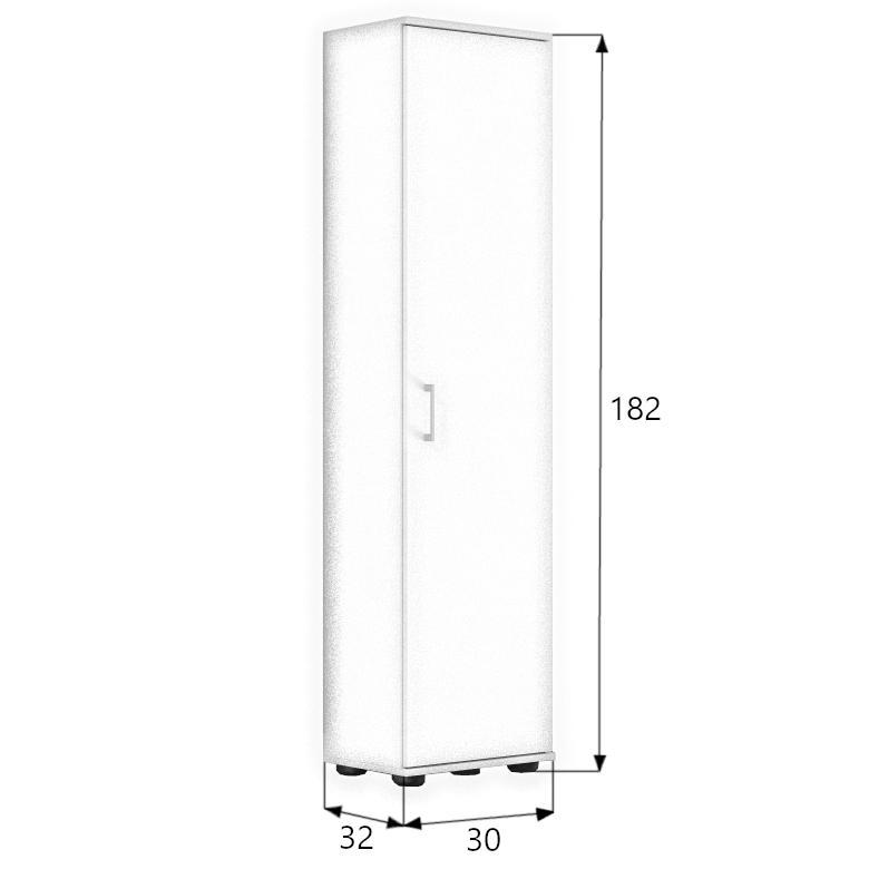 Regał wyposażono w drzwiczki, za którymi znajduje się pięć półek.