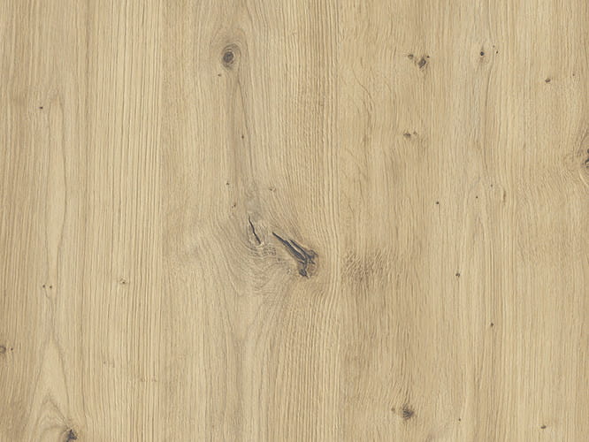 Korpus w kolorze dąb artisan oraz front w kolorze biały mat wykonano z płyty laminowanej producenta Kronopol o grubości 16 mm. Plecy zrobiono z płyty HDF 3 mm.