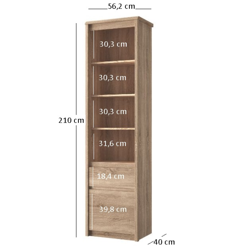 Regał otwarty 1d1s, dąb sonoma, kolekcja Somma
