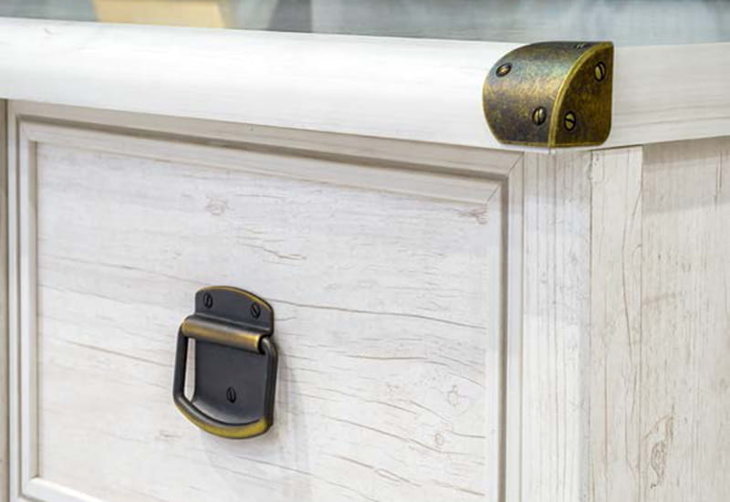 + Oryginalne, mosiężne uchwyty podkreślają charakter mebli.