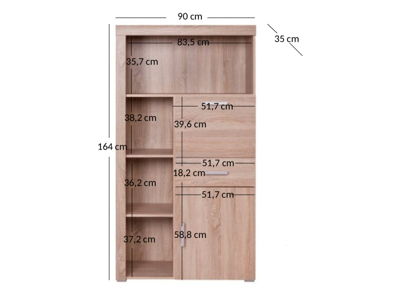 Regał z barkiem 1d1s1b, dąb sonoma, kolekcja Damis