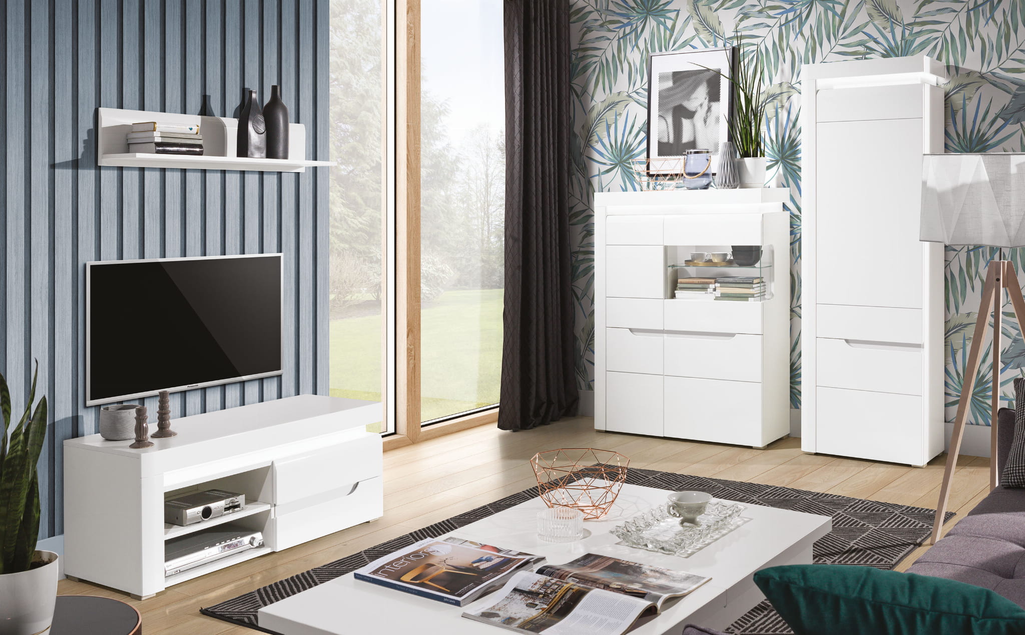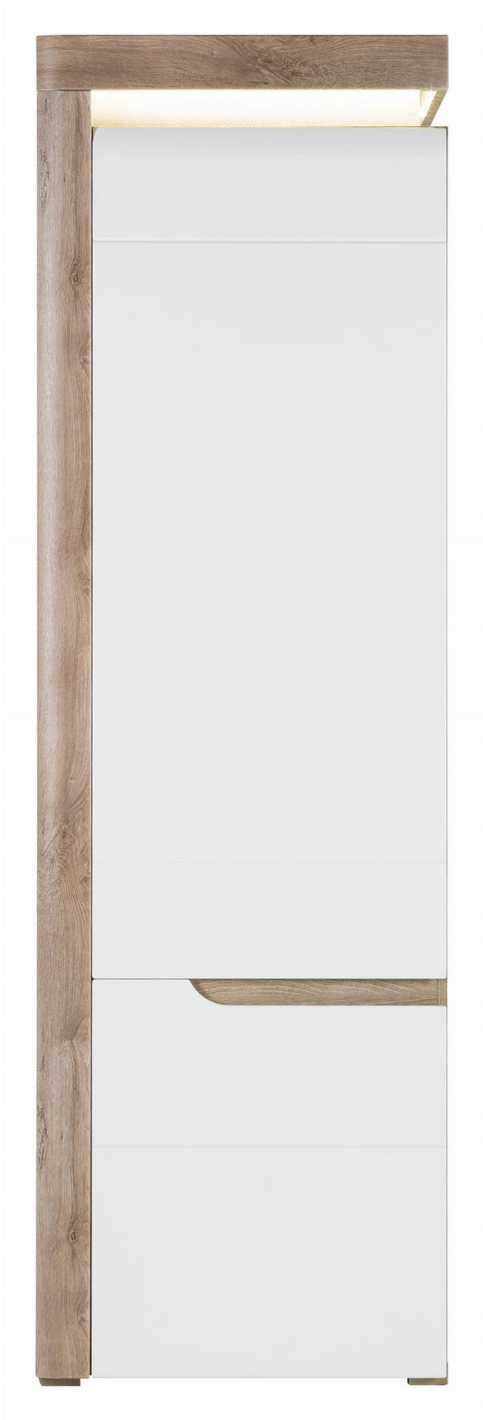 IRMA IM8 wyróżnia się nowoczesnym designem oraz modną kolorystyką efektownie łączącą wybarwienie dębu z wykończonym na biały połysk frontem. Uwagę skupia na sobie wyrazista wstawka podkreślająca elegancki styl i masywność formy. Bezpośrednio nad drzwiami umieszczona jest ledowa listwa oświetleniowa, która nie tylko nada wnętrzu luksusowego charakteru, ale również wprowadzi niepowtarzalny klimat.