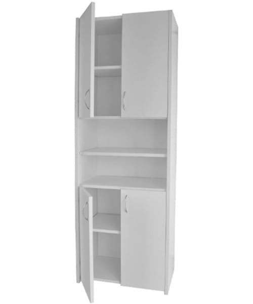 Korpus oraz fronty wykonano z płyty laminowanej producenta Kronopol o grubości 16 mm w kolorze biały mat. Plecy zrobiono z płyty HDF 3 mm.