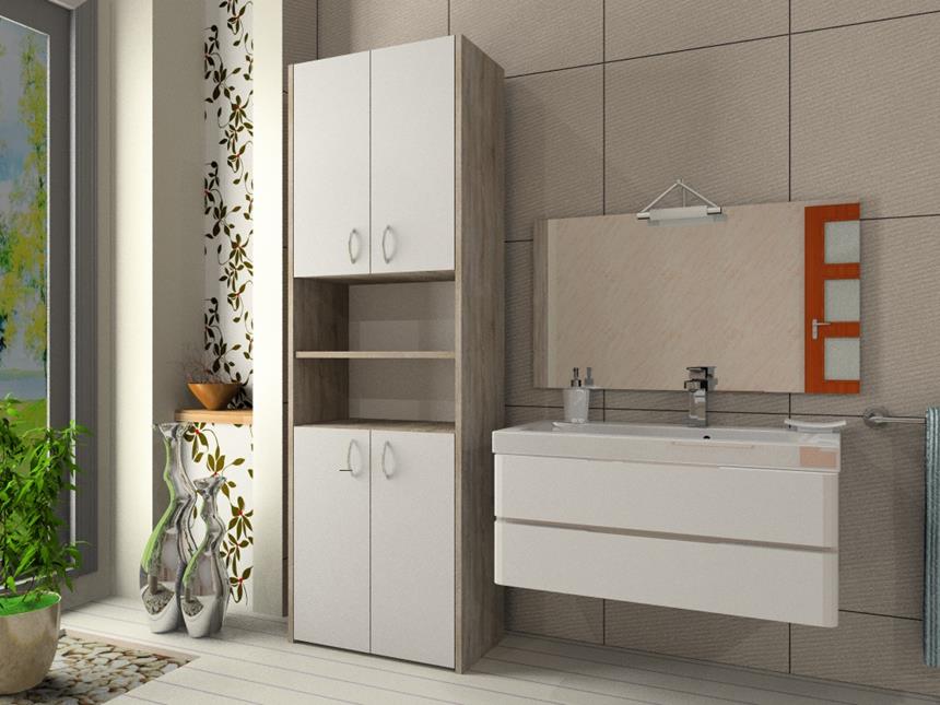 Słupek łazienkowy stojący, szafka, regał PAWEŁ 4D dąb sonoma / biały 56 cm