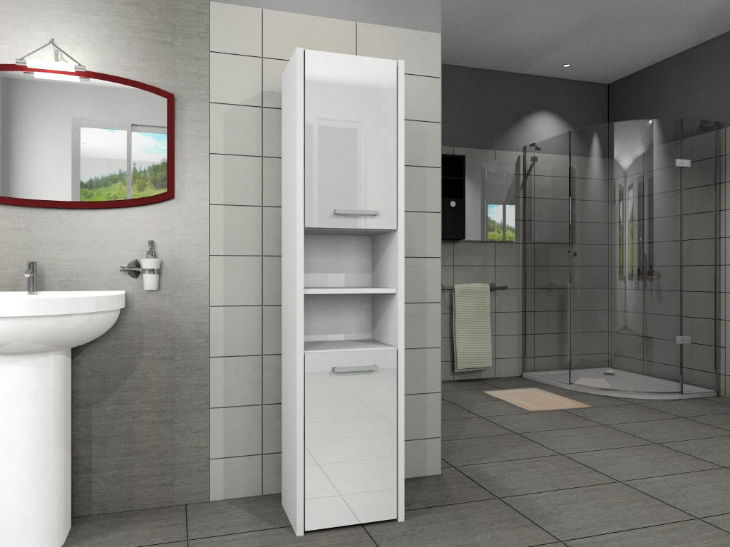 Słupek łazienkowy stojący, szafka, regał PRIMO 2D biały połysk AKRYL 40 cm