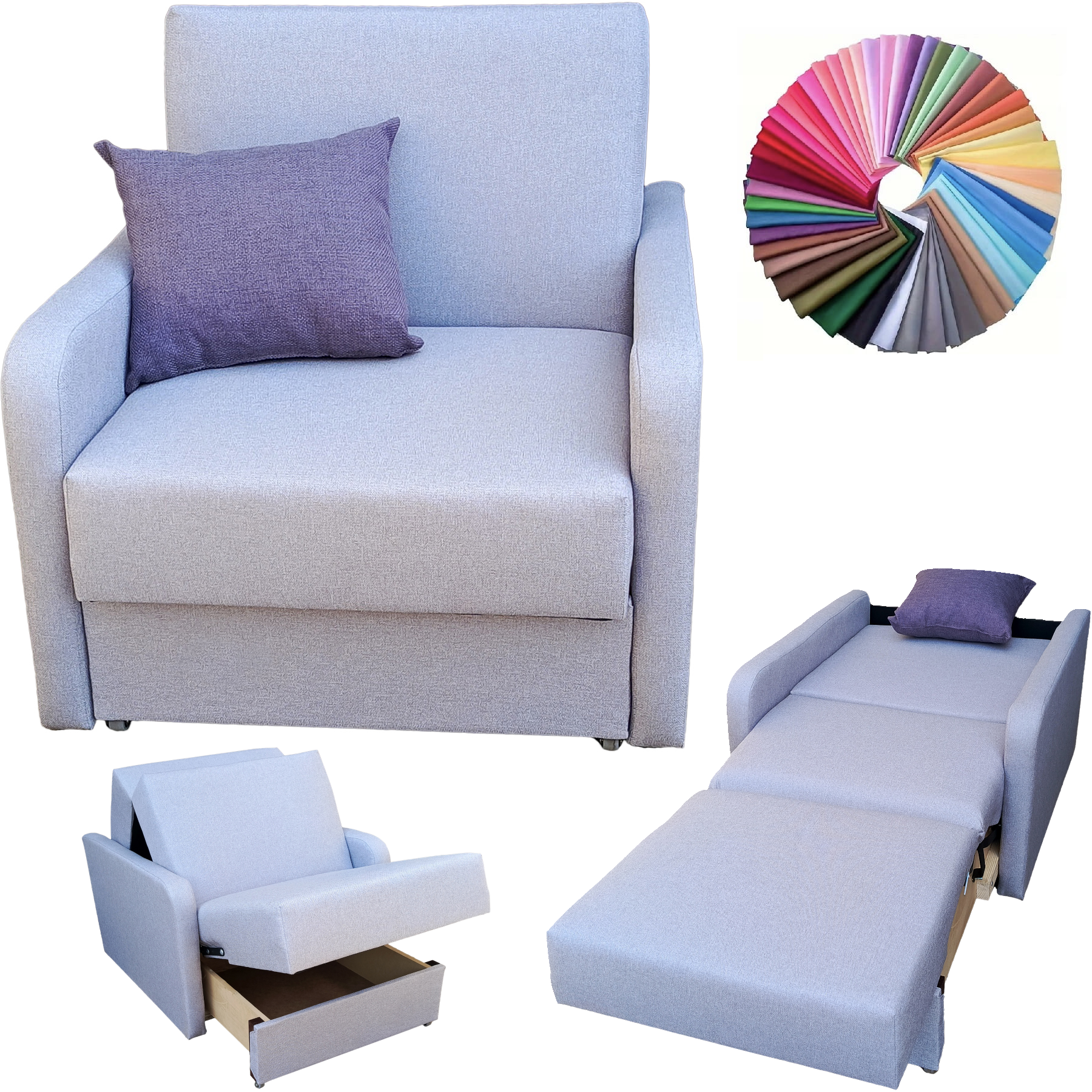 Sofa Amerykanka Fotel Rozkładany Jednoosobowy do Spania Kanapa Angela I 80