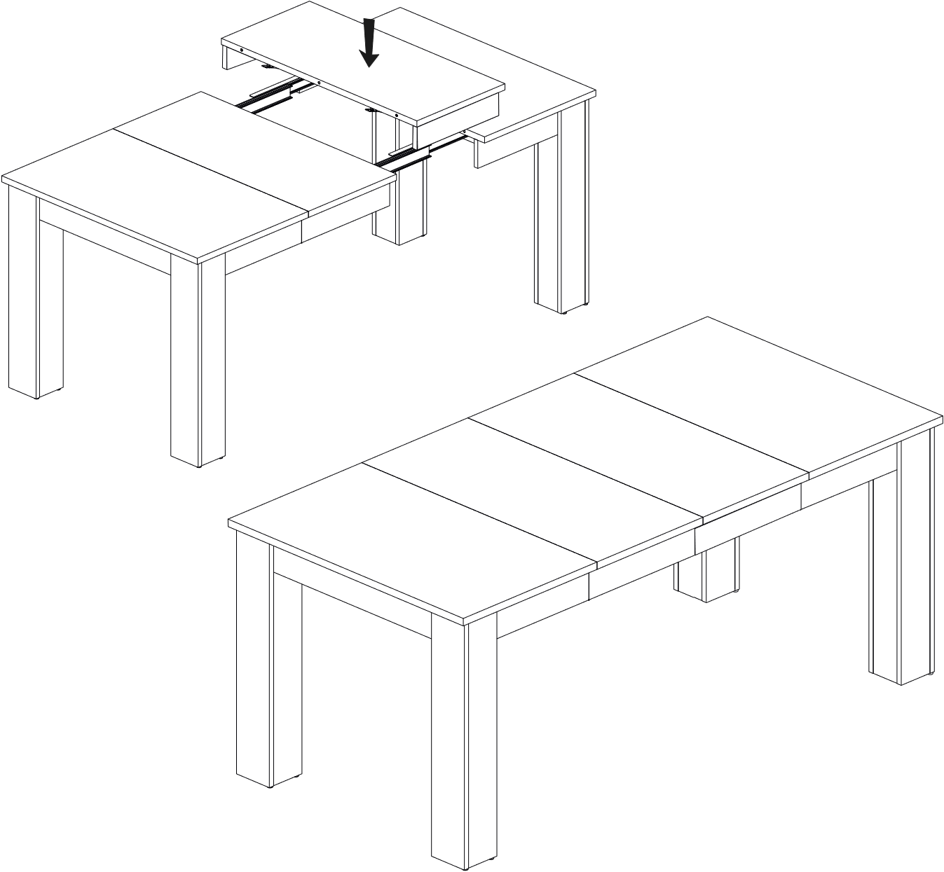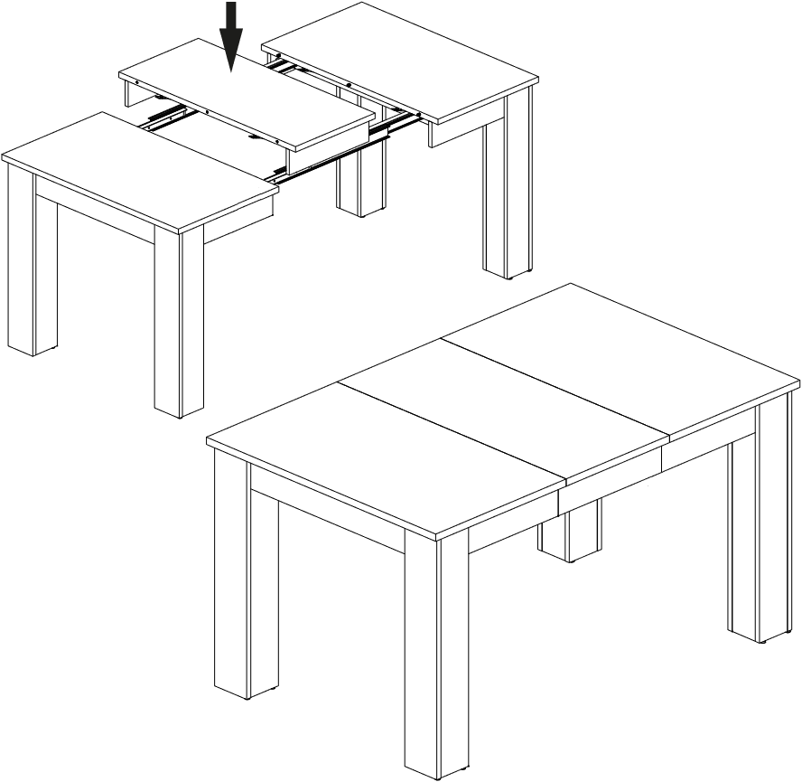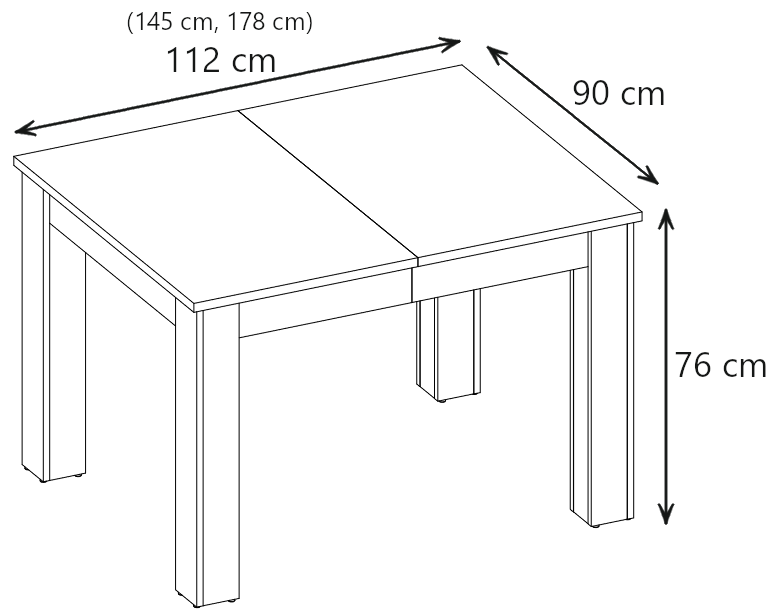 Stół można rozłożyć do 178 cm poprzez przesunięcie blatu wraz z nogami i dołożeniu dwóch wkładek o długości 33 cm.