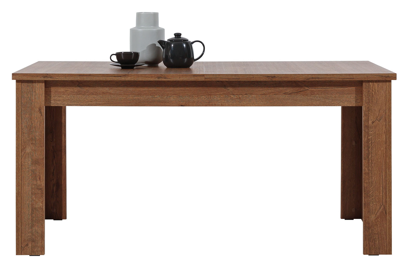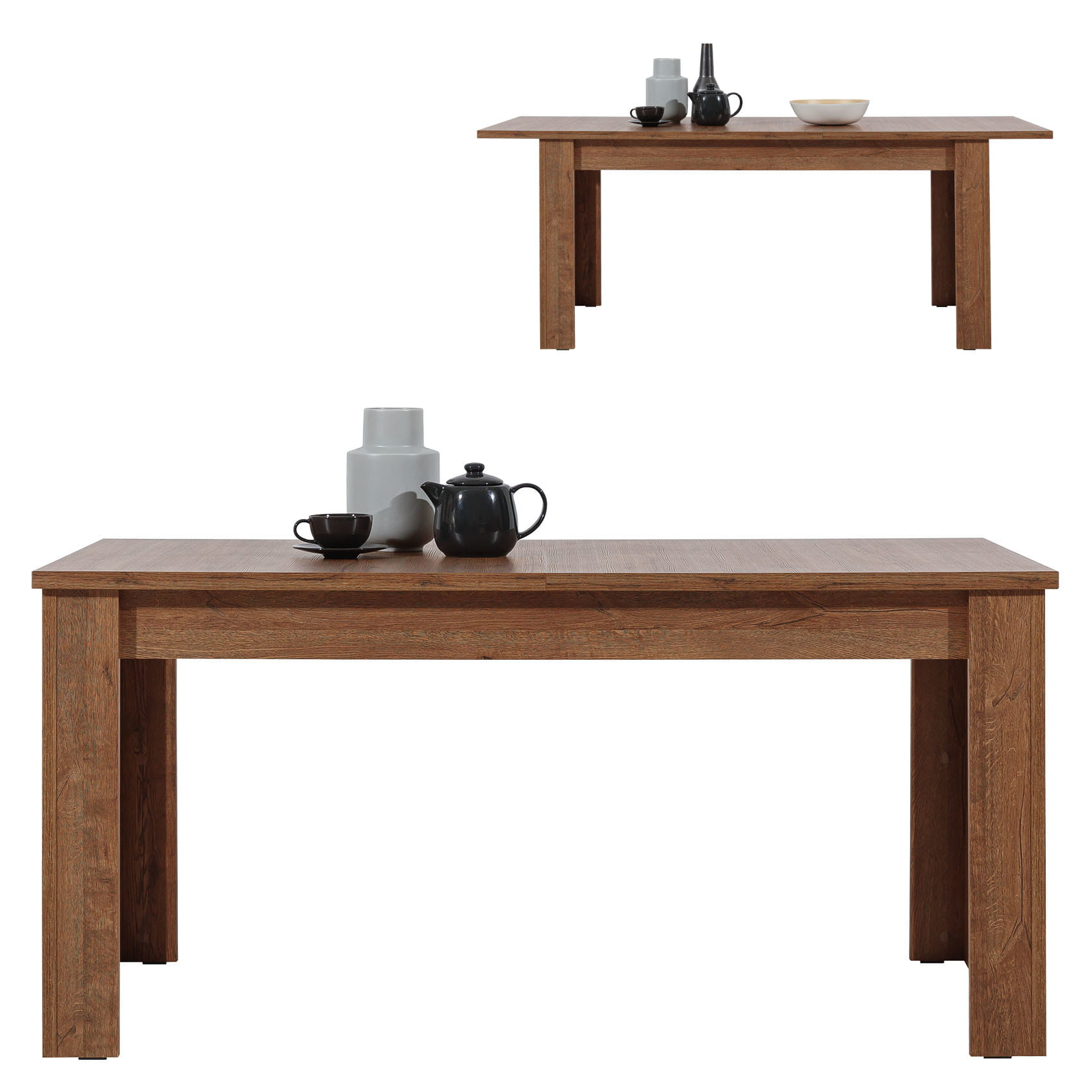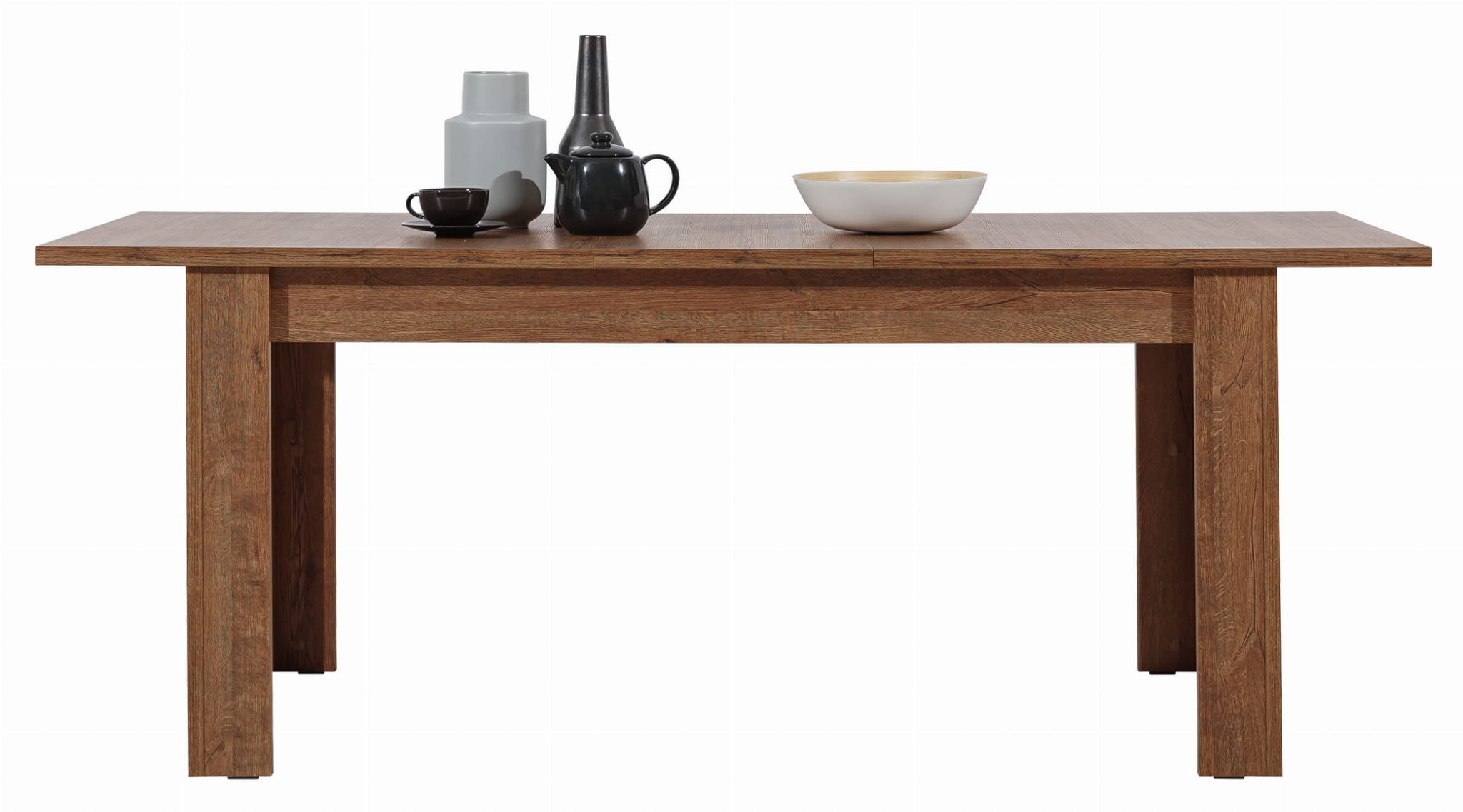 stół rozkładany, wymiary: 160-240/90/76 cm; materiał: blat - płyta fornirowana na obrzeżach drewno lite, nogi - drewno lite - bukowe, kolor: blat – ciemny dąb, nogi - czarneEAN: 2010001182559Waga: 1 kg.