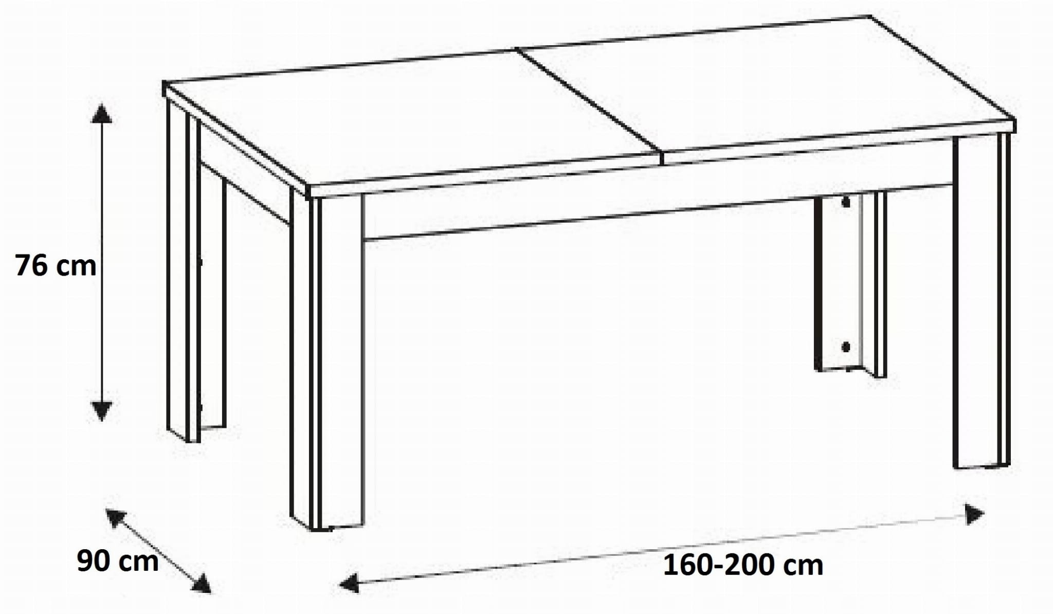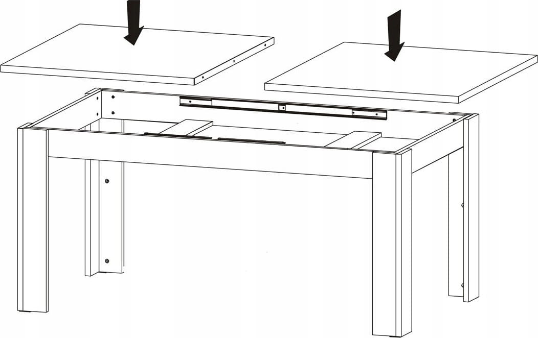 Stół można rozłożyć do 200 cm poprzez przesunięcie blatu i dołożenie schowanej pod blatem wkładki o długości 40 cm.
