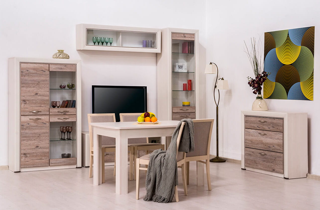 Centralnym i najważniejszym meblem każdej jadalni jest stół. Decydując się na nowoczesną aranżację tego pomieszczenia polecamy wybrać kolekcję OLIVIA. Posiada ona w swych elementach stół z dodatkową opcją rozłożenia go do większych rozmiarów. Dzięki temu użytkownicy będą zawsze przygotowani na przyjęcie większej liczby gości.