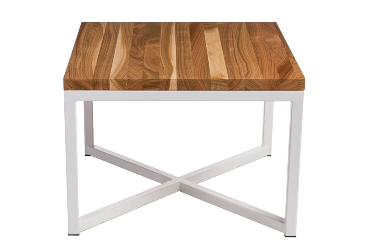 Stolik Taco 100x100 biały profil 30 mm blat lakierowany z czereśni naturalny