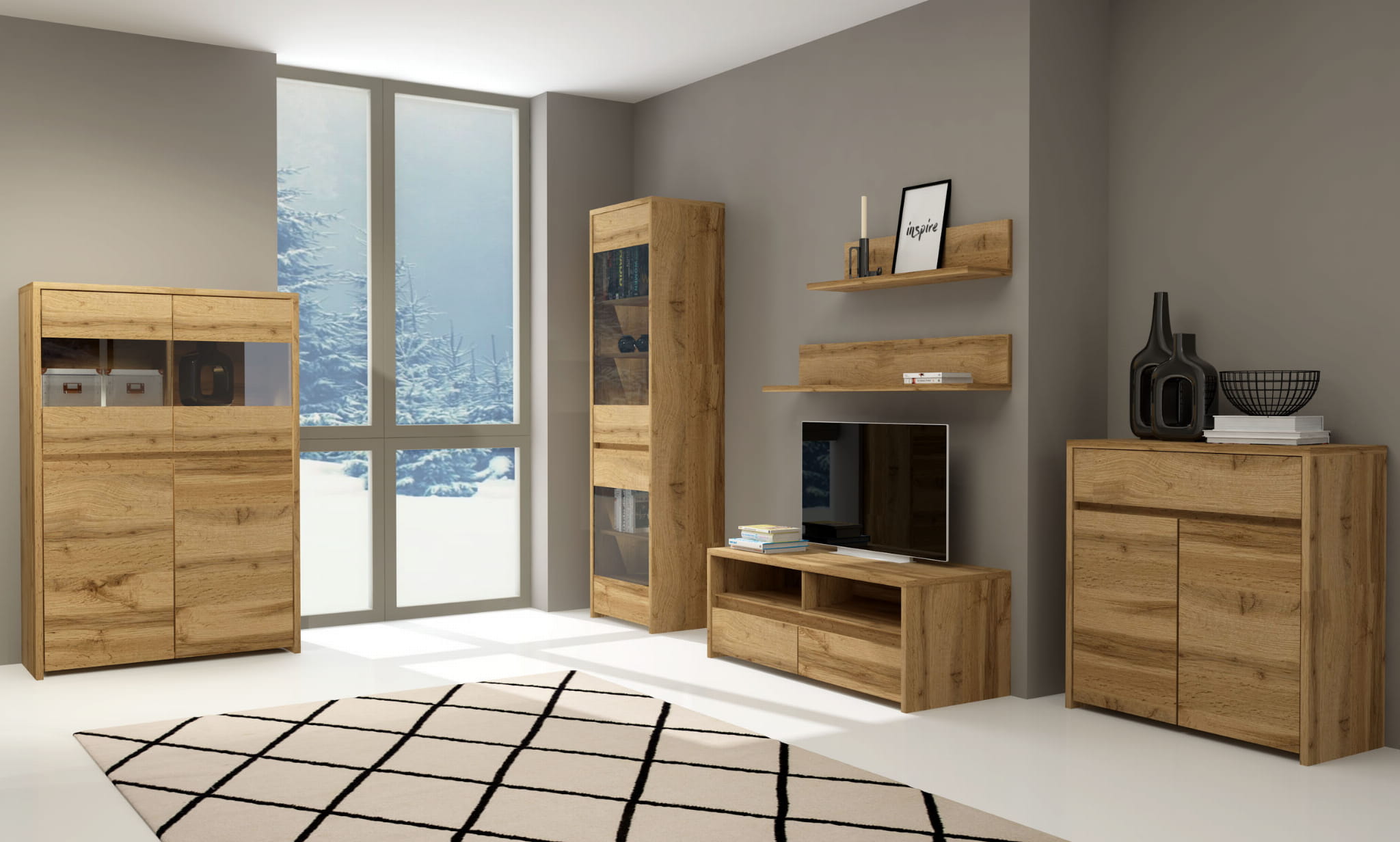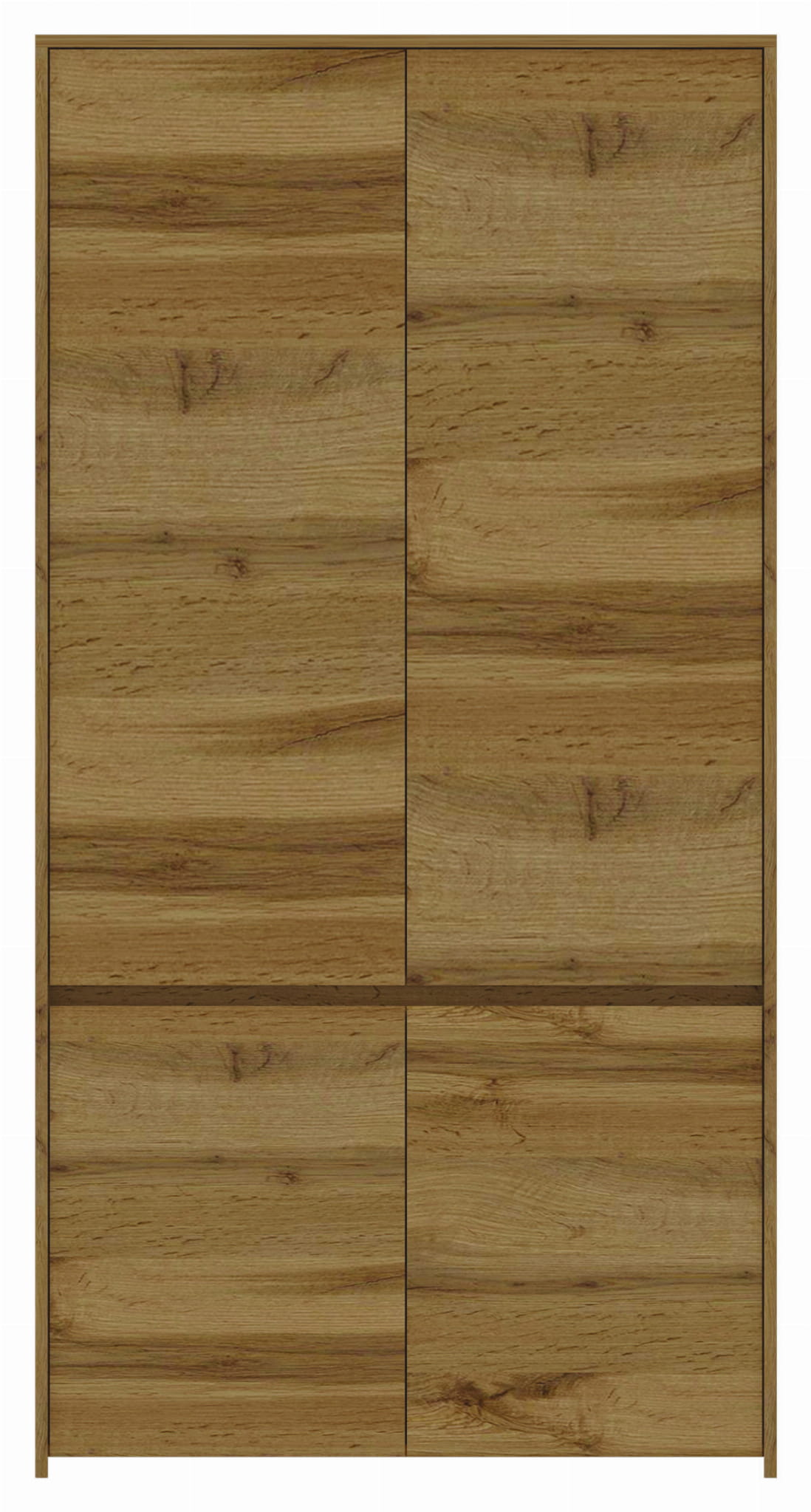 Szafa 2D Tahoe TA26 wykonana została w naturalnej kolorystyce, co powoduje, że pomieszczenia dzięki niej stają się ciepłe i przytulne. Korpusy są zrobione z wysokiej jakości płyty wiórowej laminowanej, natomiast fronty z płyty MDF oklejonej folią PCV. Wszystko to jest w pięknym kolorze dąb wotan. Kupując meble z kolekcji Tahoe mamy możliwość dokupienia oświetlenia LED półek witryn oraz dodatkowych listew z oświetleniem do szafy, co nada jeszcze większego uroku meblom. Znajdziemy tu wysokiej jakości system bezdotykowego otwierania frontów oraz szuflad.