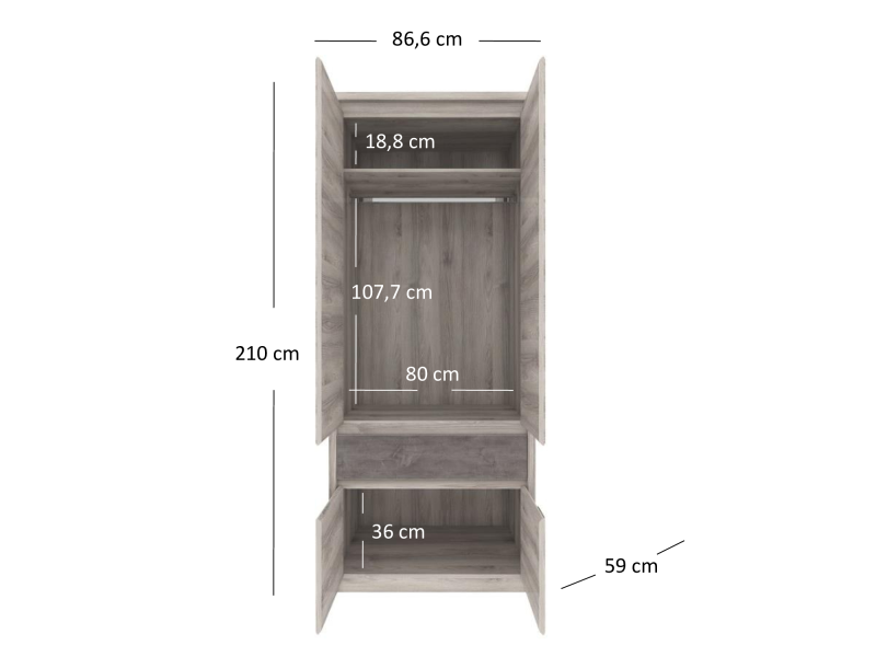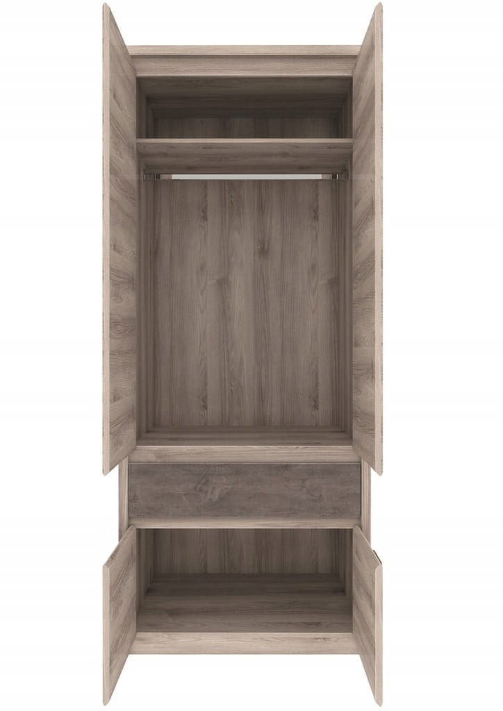 Wewnątrz szafy 4d1s z kolekcji Jazz znajduje się drążek na wieszaki a nad nim półka. Poniżej szuflada oraz szafka z drzwiczkami które pomogą Ci zorganizować swoje ubrania. Szafa jest dostępna w uniwersalnej i delikatnej kolorystyce, taki wybór ułatwi zaaranżowanie każdego wnętrza.