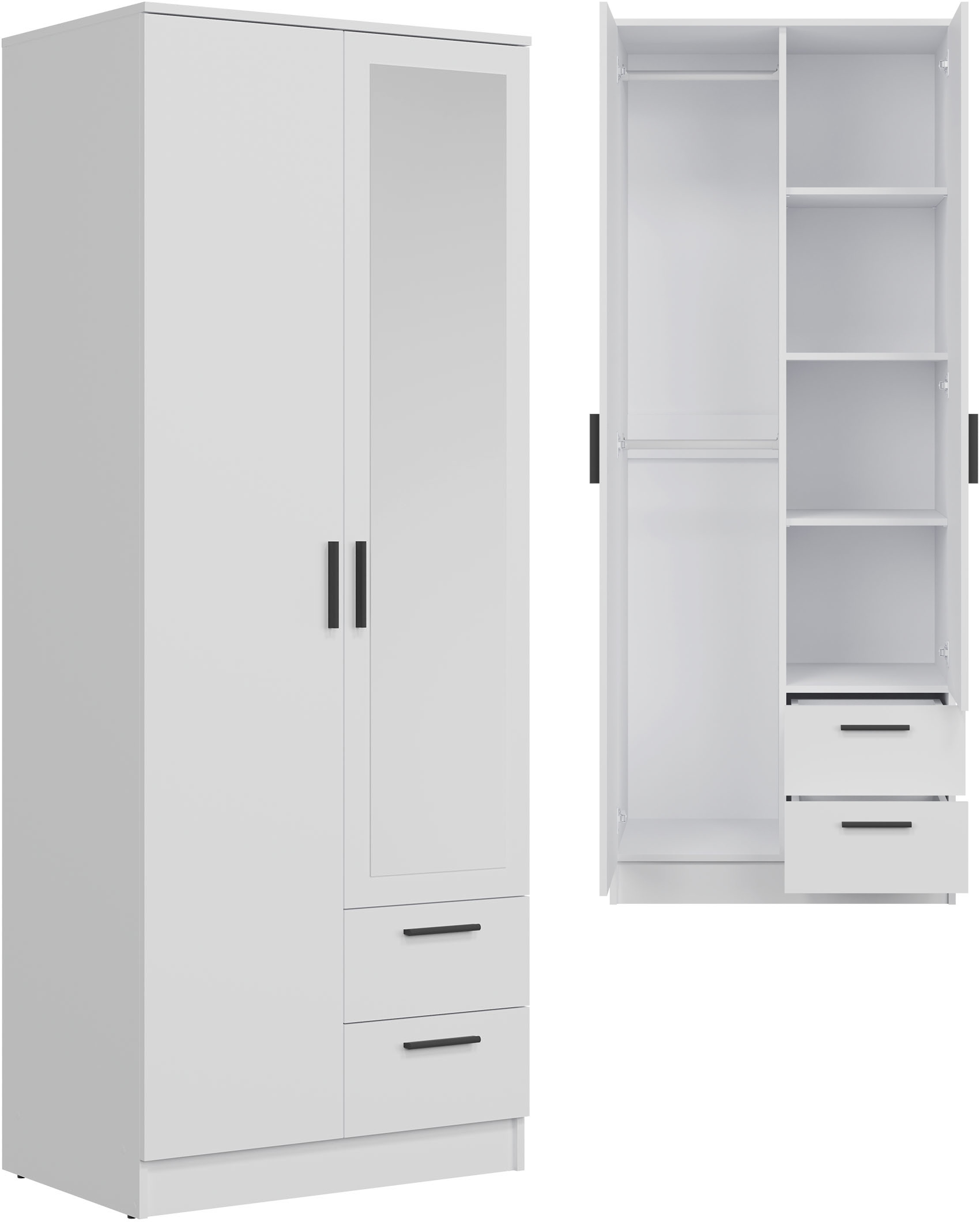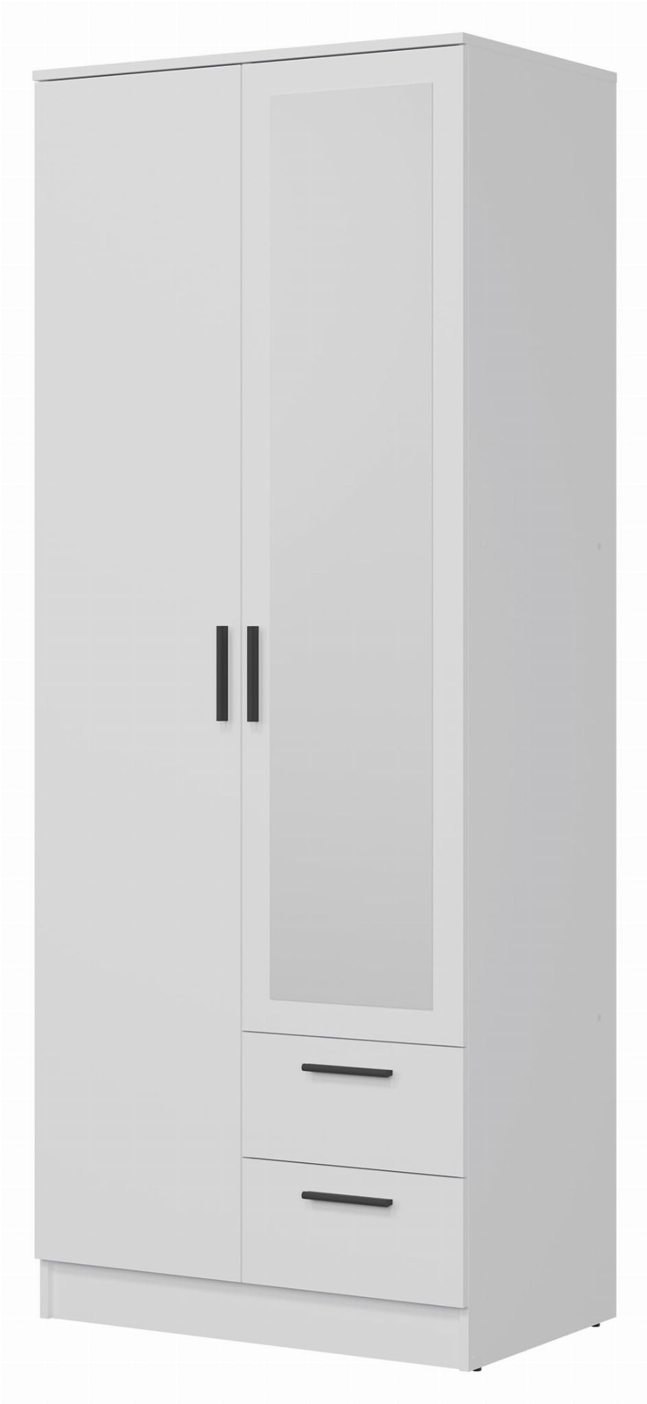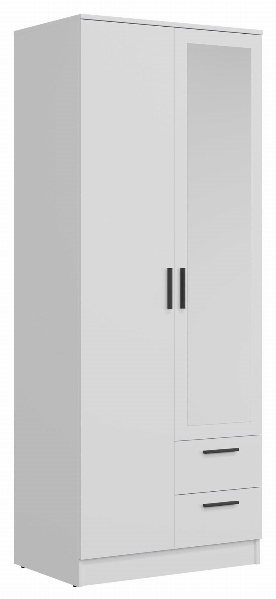 Szafa dwudrzwiowa z szufladami i lustrem wąska 80 cm biała MONTANA MT02