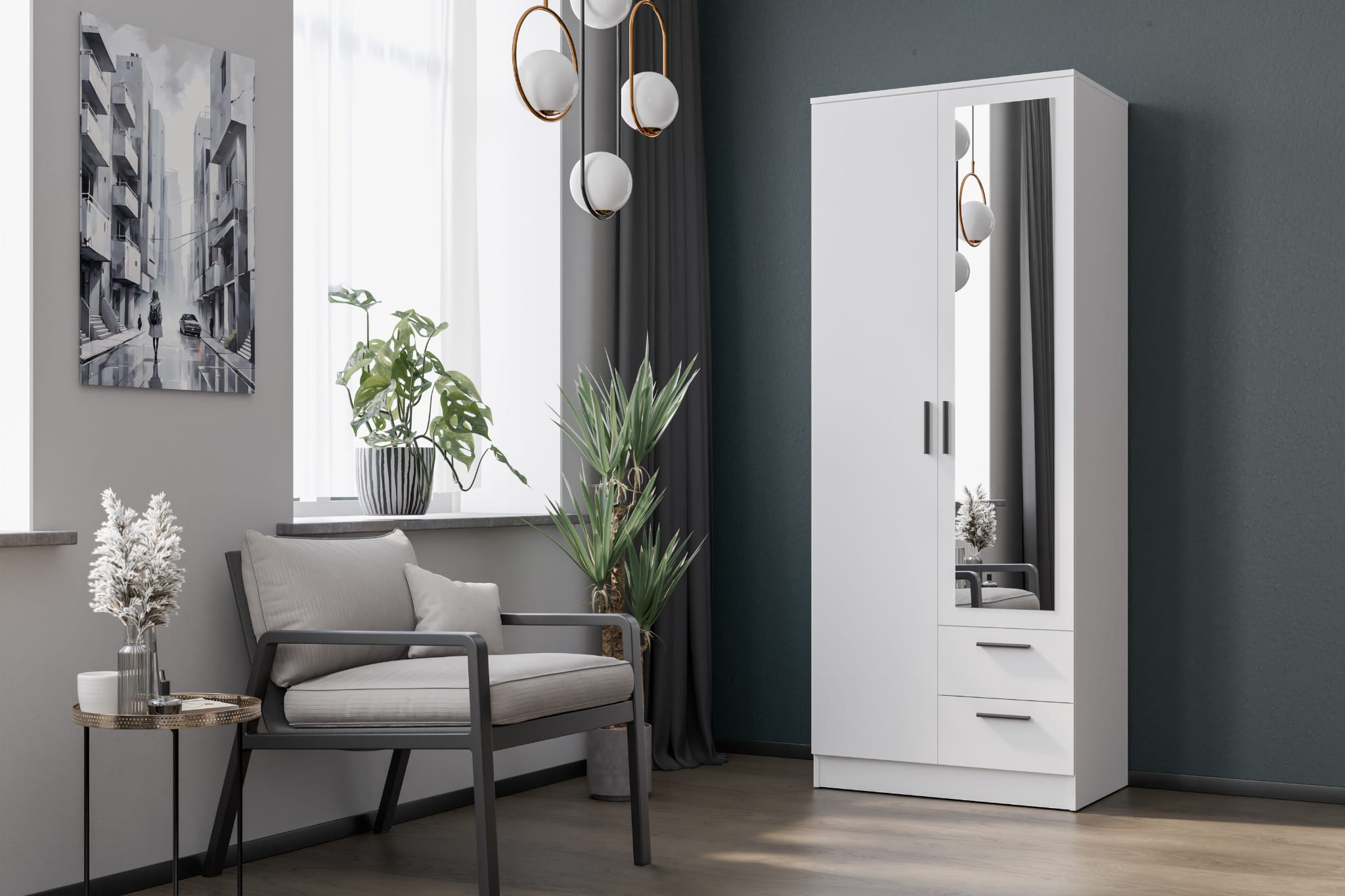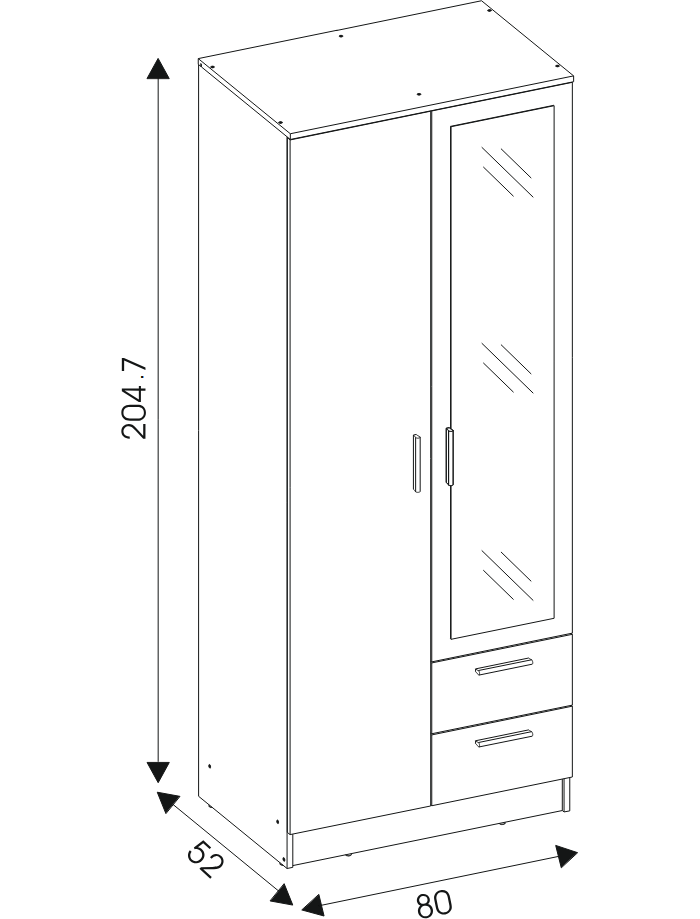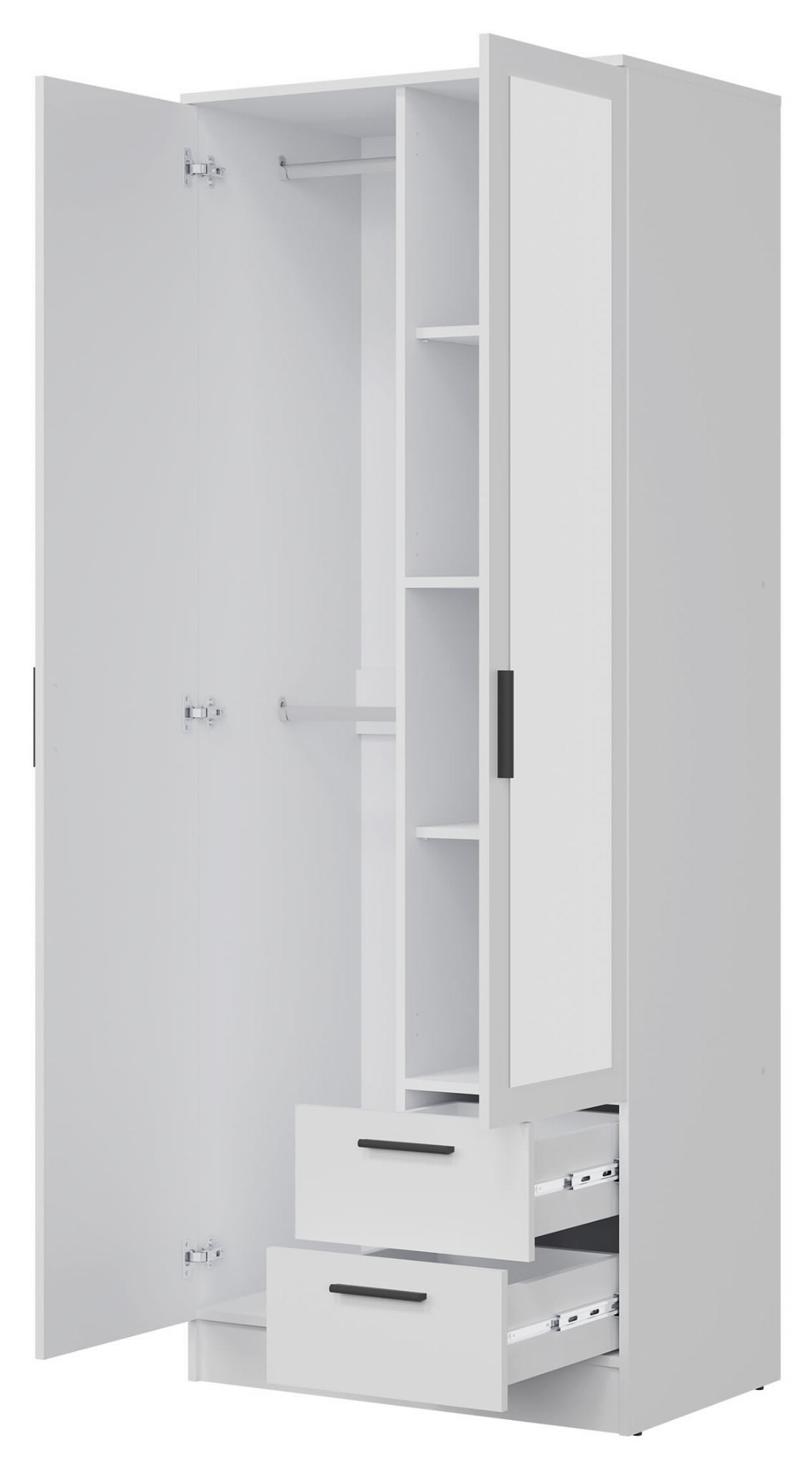 Szafa dwudrzwiowa z szufladami i lustrem wąska 80 cm biała MONTANA MT02