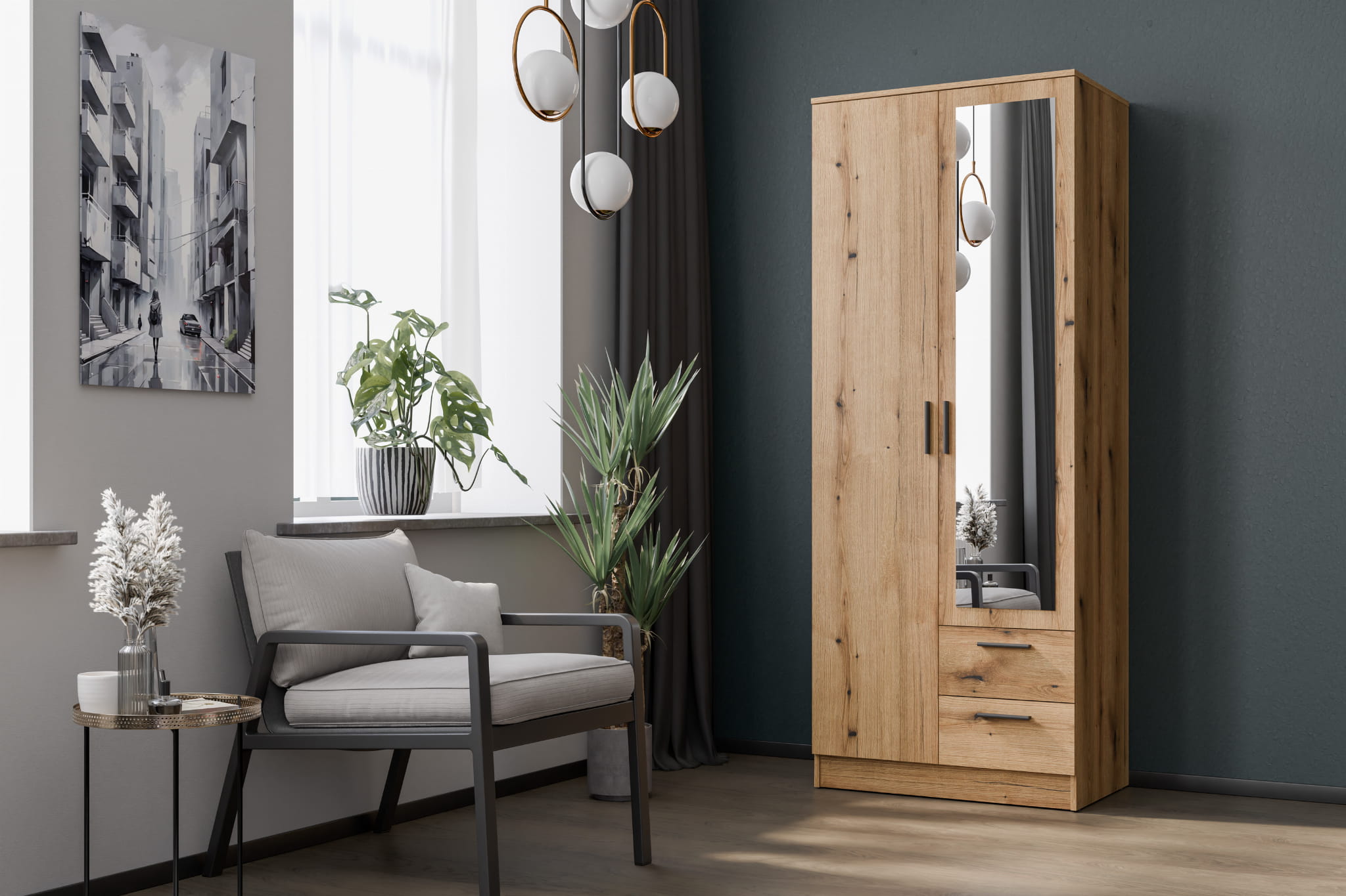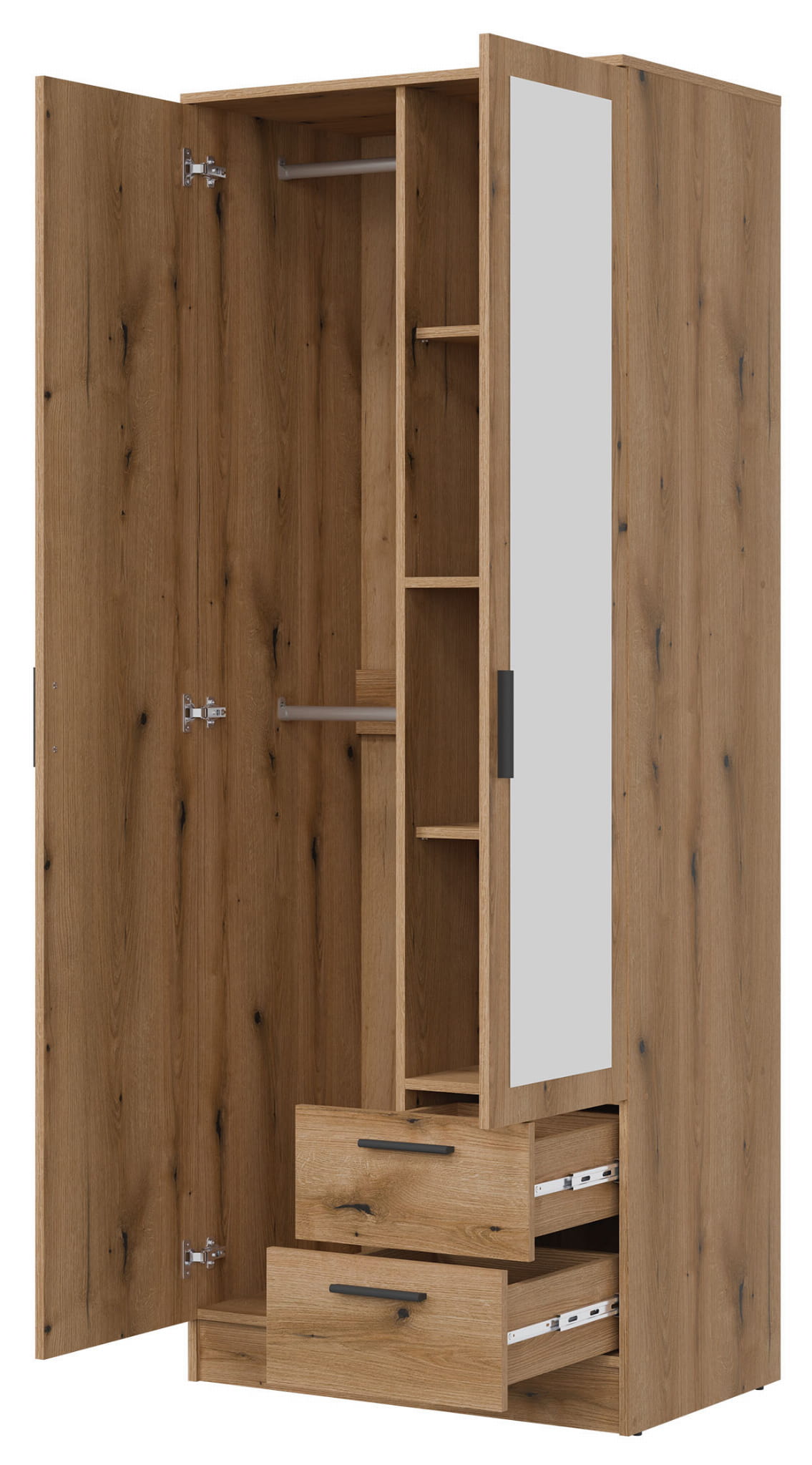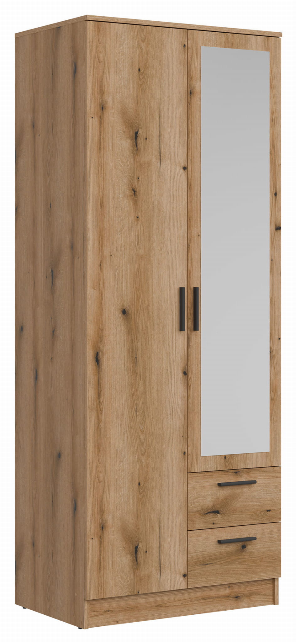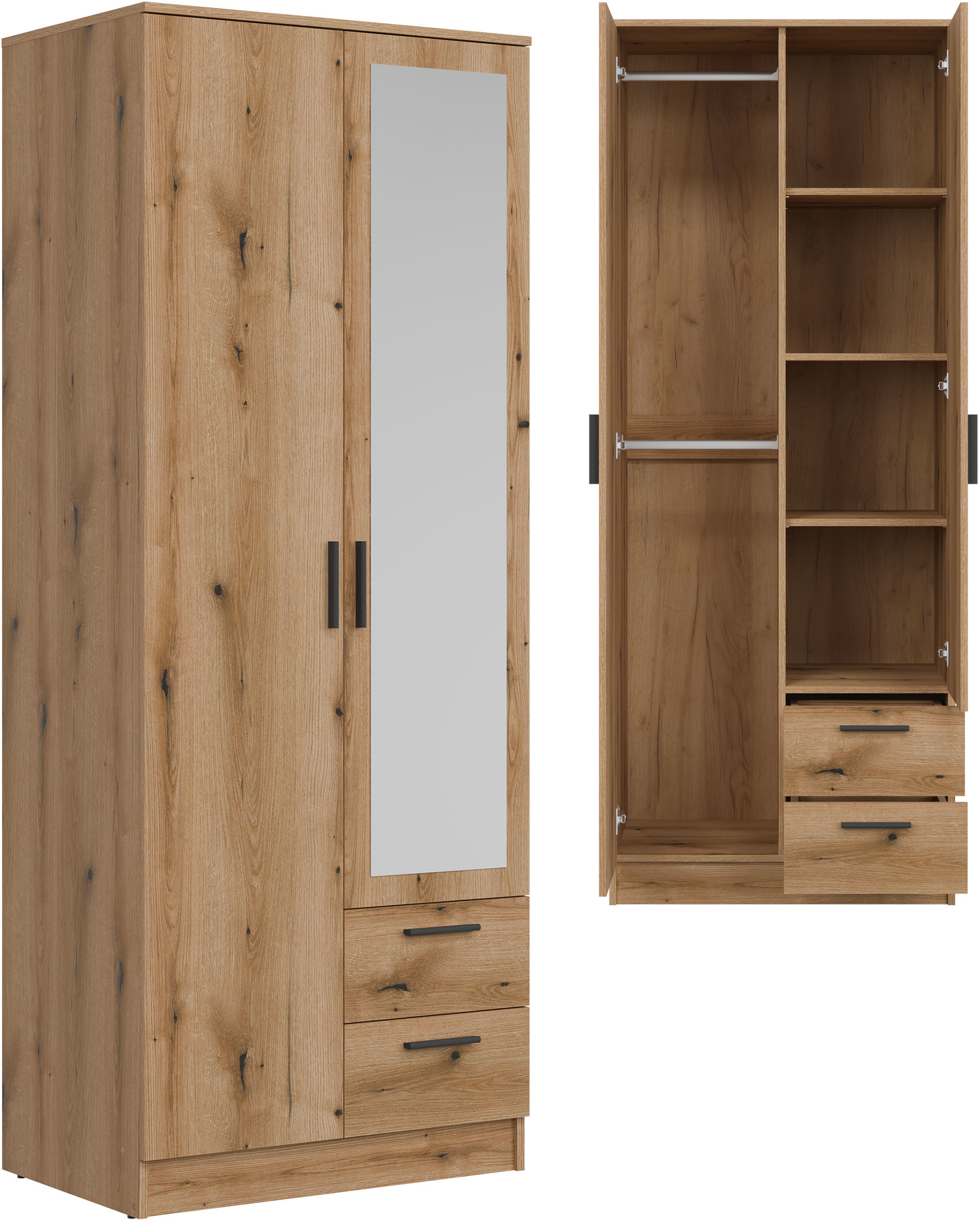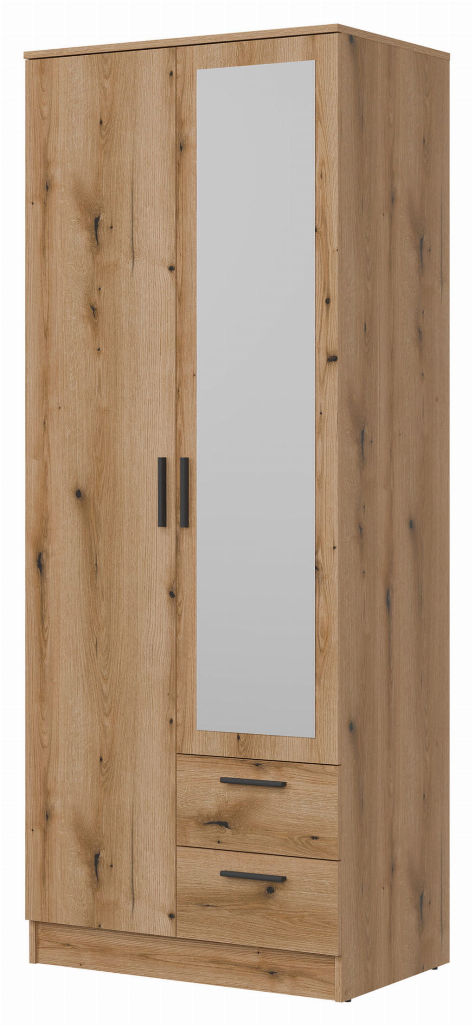 Szafa dwudrzwiowa z szufladami i lustrem wąska 80 cm dąb evoke MONTANA MT02