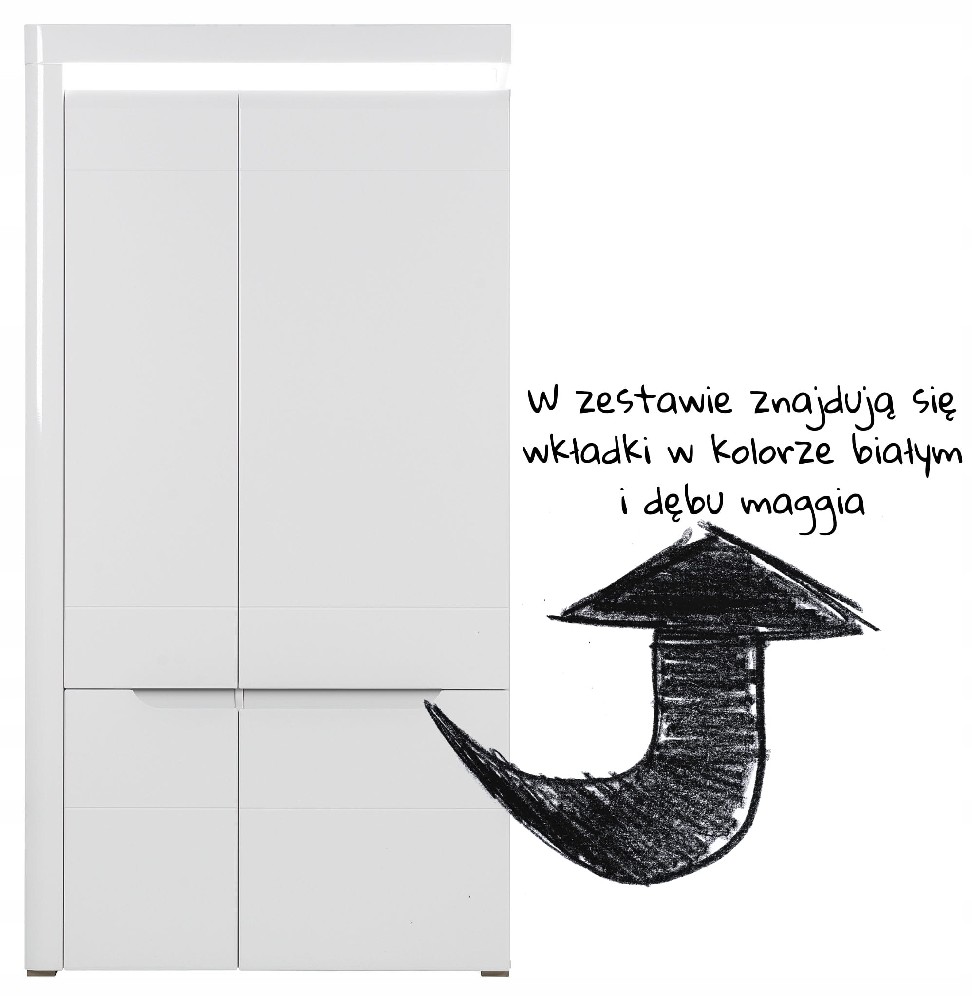 Bryłę wykonano z połączenia wysokiej jakości płyty laminowanej oraz płyty MDF oklejonej folią PCV w połysku, chroniącą przed odbarwieniami i wilgocią. Taka kombinacja gwarantuje dużą wytrzymałość mebla, przez co powinien posłużyć długi czas.