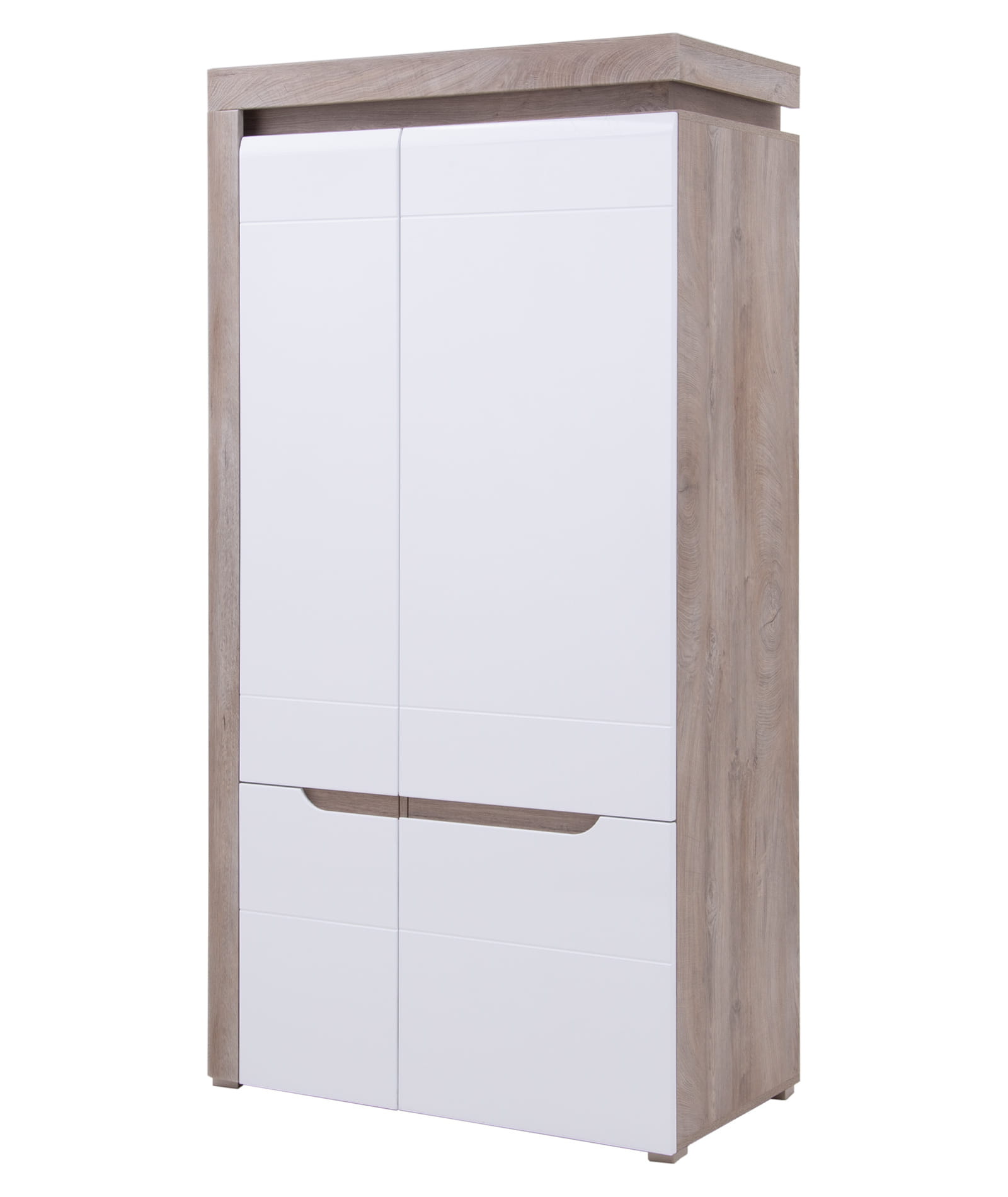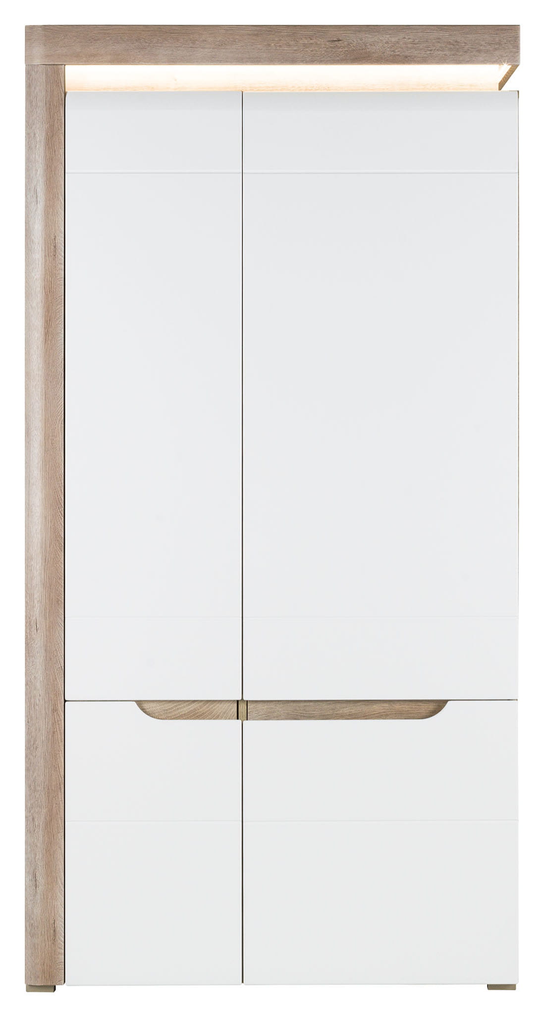 IRMA IM9 wyróżnia się nowoczesnym designem oraz modną kolorystyką efektownie łączącą wybarwienie dębu z wykończonym na biały połysk frontem. Uwagę skupia na sobie wyrazista wstawka podkreślająca elegancki styl i masywność formy. Bezpośrednio nad drzwiami umieszczona jest ledowa listwa oświetleniowa, która nie tylko nada wnętrzu luksusowego charakteru, ale również wprowadzi niepowtarzalny klimat.