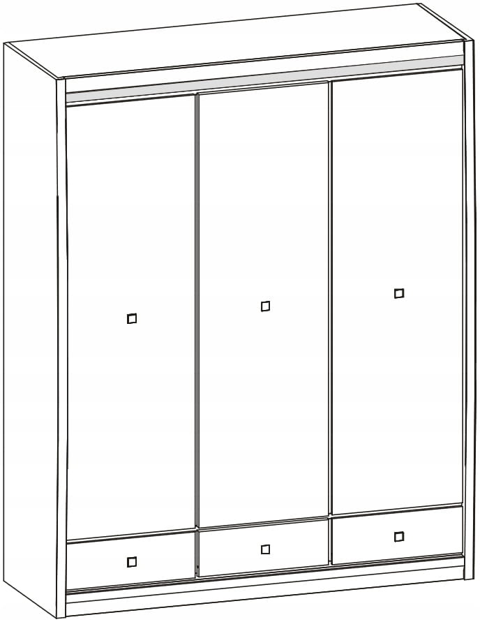 Mebel składa się trzech otwieranych frontów, za którymi znajduje się drążek do wieszania ubrań oraz pięć wnęk. Dolną cześć wyposażono w trzy szuflady wysuwane na prowadnicy rolkowej.