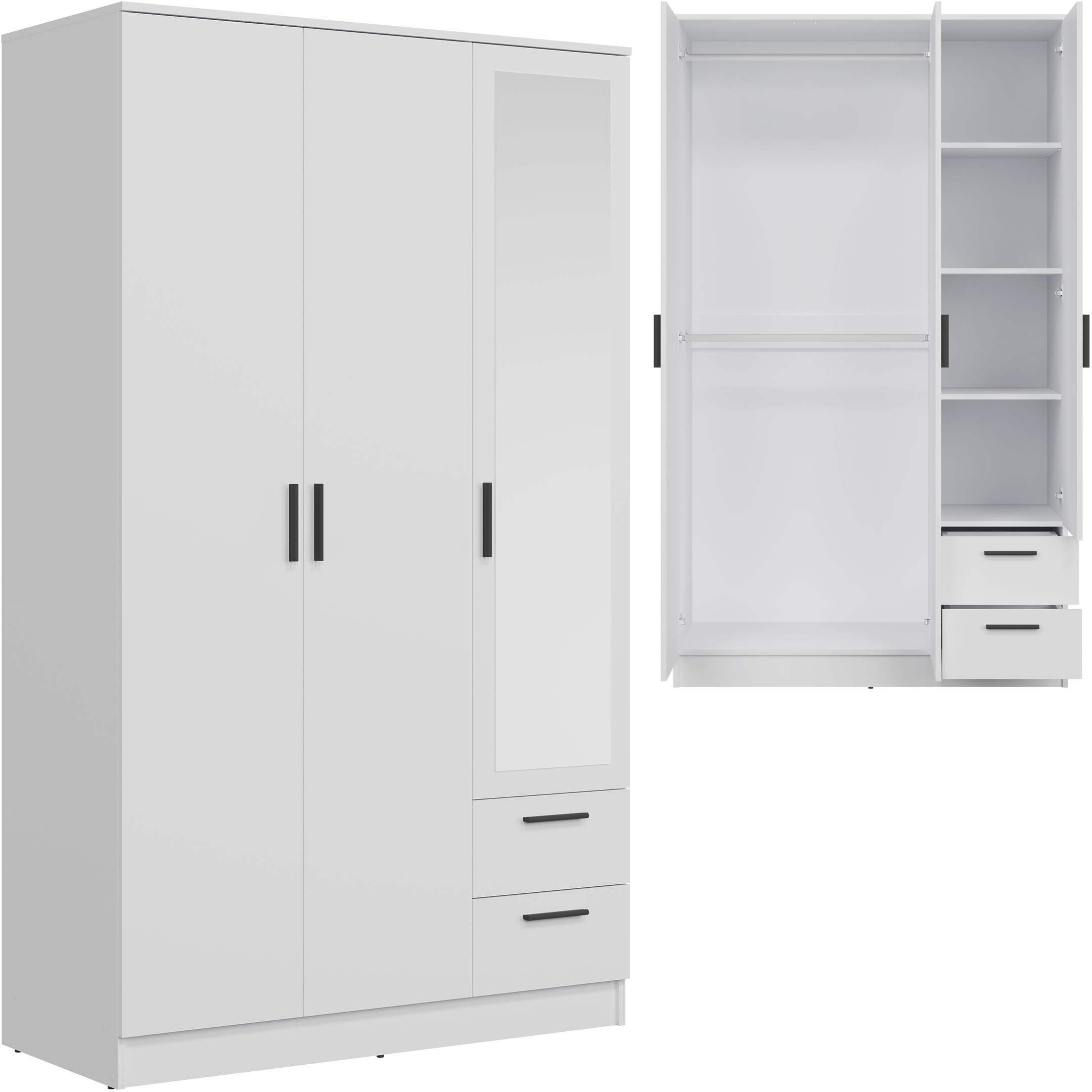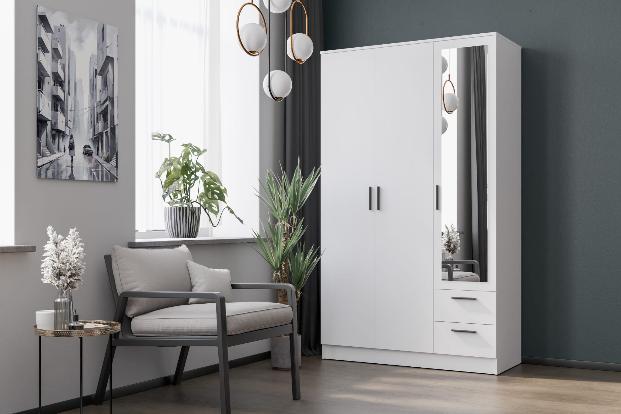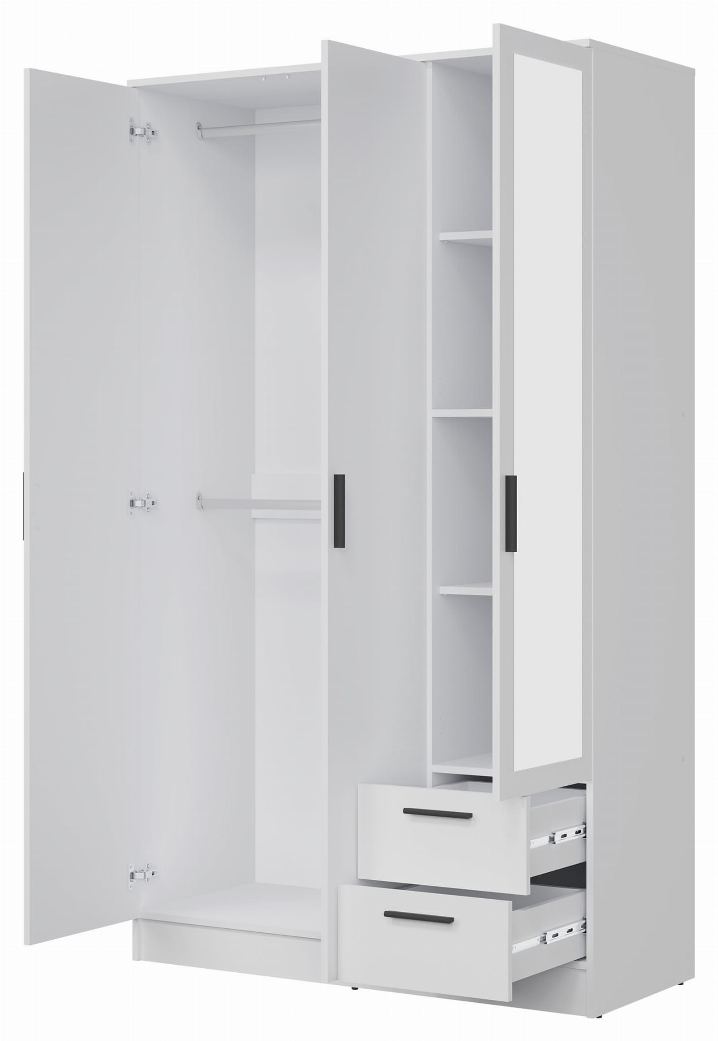 Szafa trzydrzwiowa z szufladami i lustrem 120 cm biała MONTANA MT03