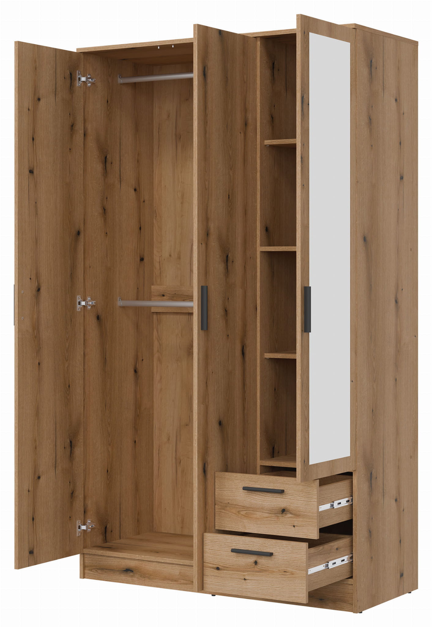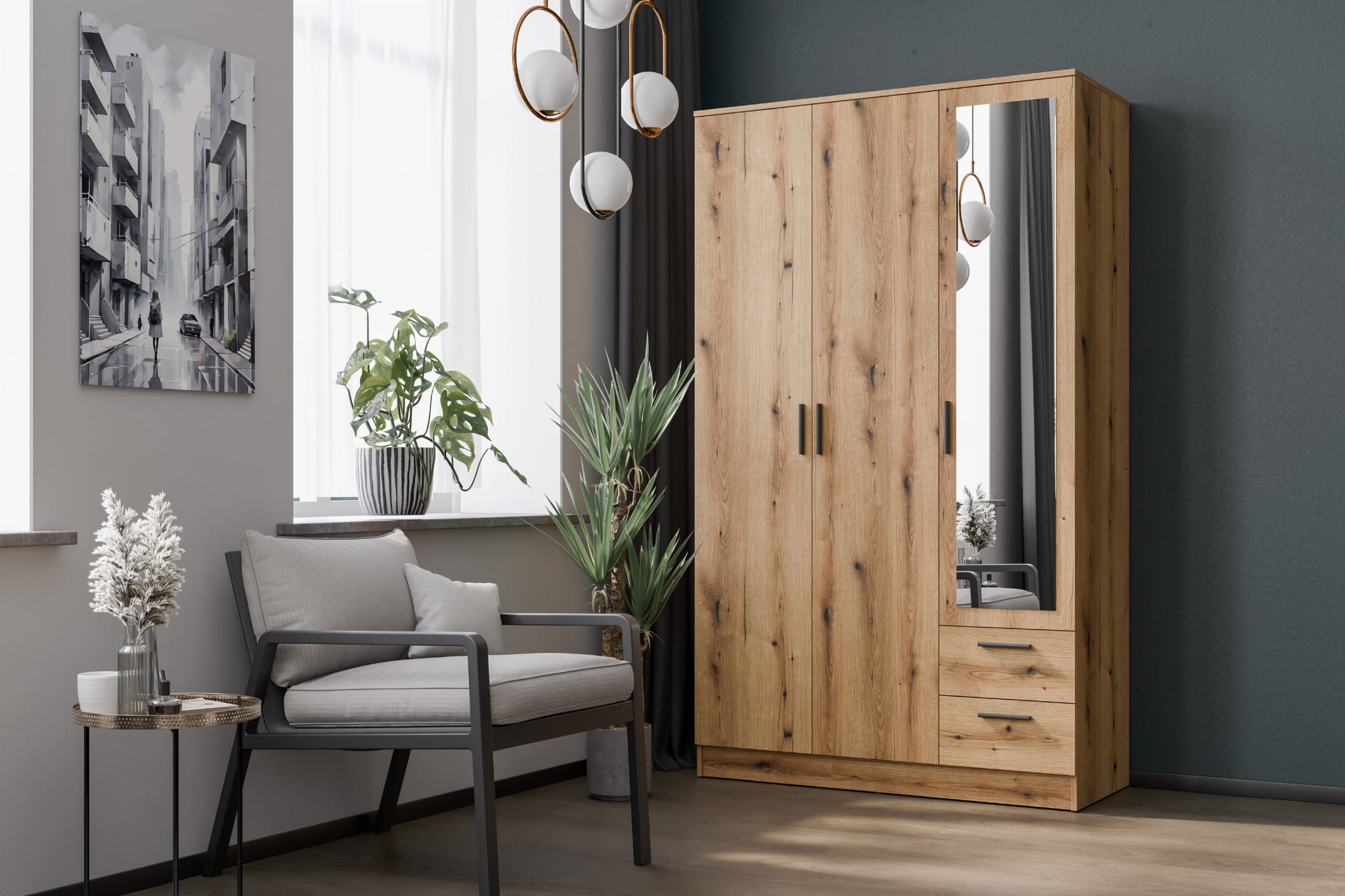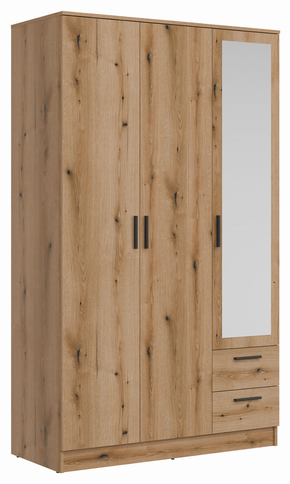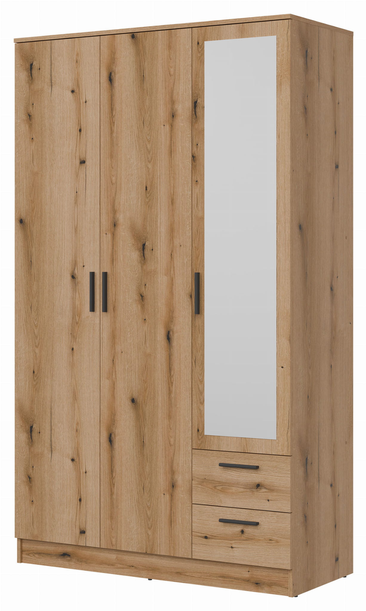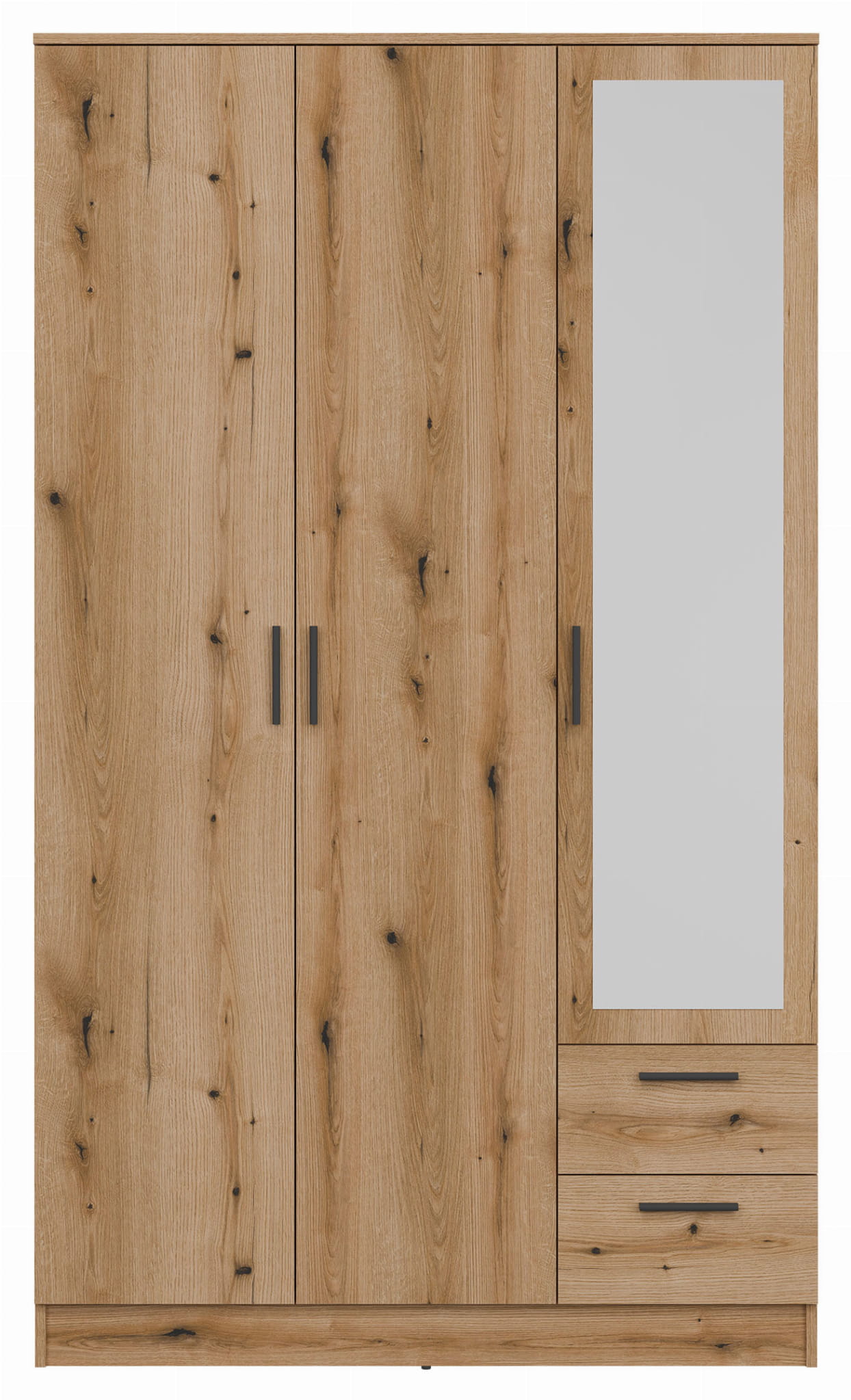 Szafa trzydrzwiowa z szufladami i lustrem 120 cm dąb evoke MONTANA MT03